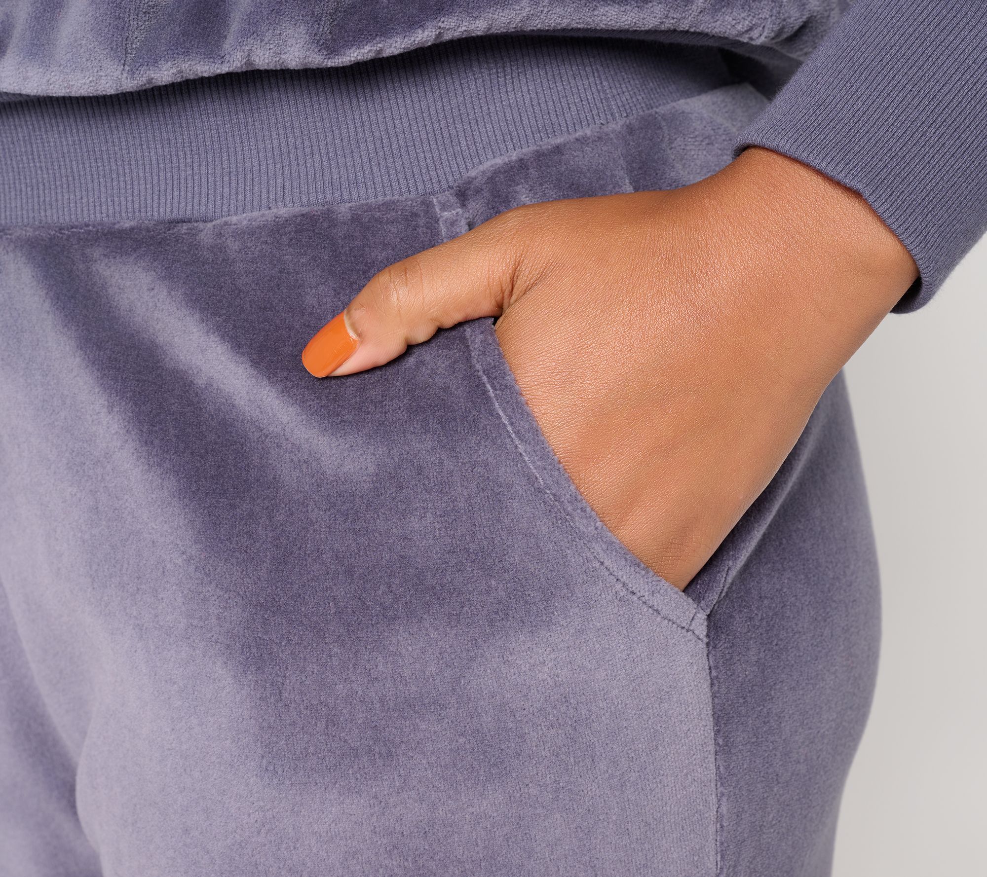 More cozy mornings. More relaxed evenings. Set yourself up for some seriously stylish downtime with these velour joggers, offering softness and a modern vibe in one easy pull-on design. Ribbed cuffs pick up where your retro sneakers or snuggly slippers leave off. From Martha Stewart.