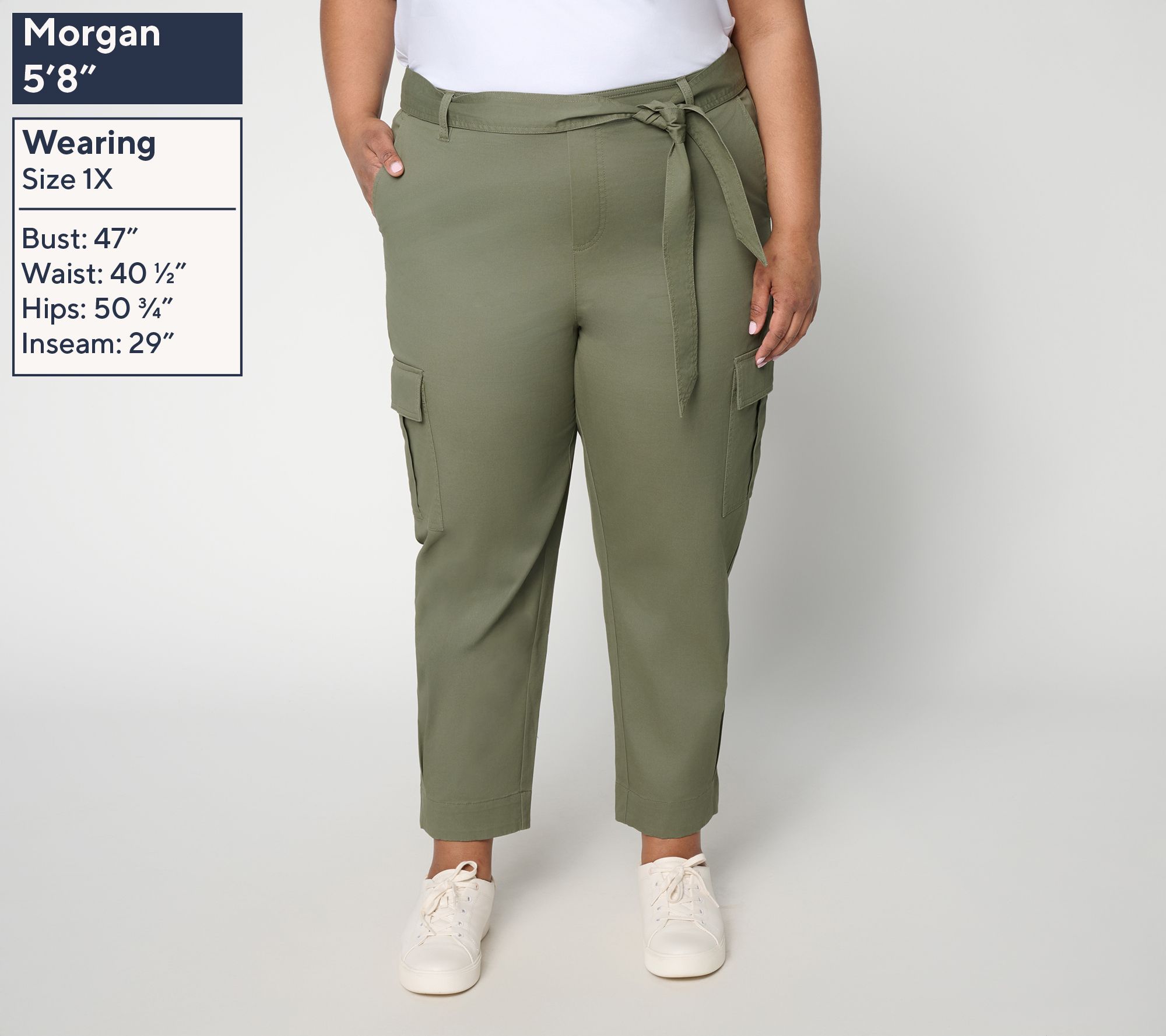 Meet the pants that work as hard as Martha does. Her utility pocket ankle pants bring a modern twist to the classic cargo, with an easy pull-on design and self-tie belt that lets you cinch your look to your liking. Crafted from soft cotton with a touch of spandex, they move with you while you juggle your day. And don't miss the subtle pleating at the leg hem for a tailored finish (Martha's nailed the art of everyday elegance with that little detail). From Martha Stewart.