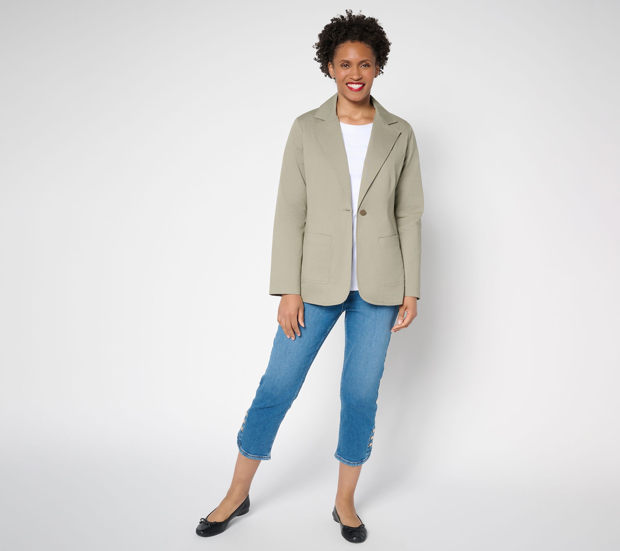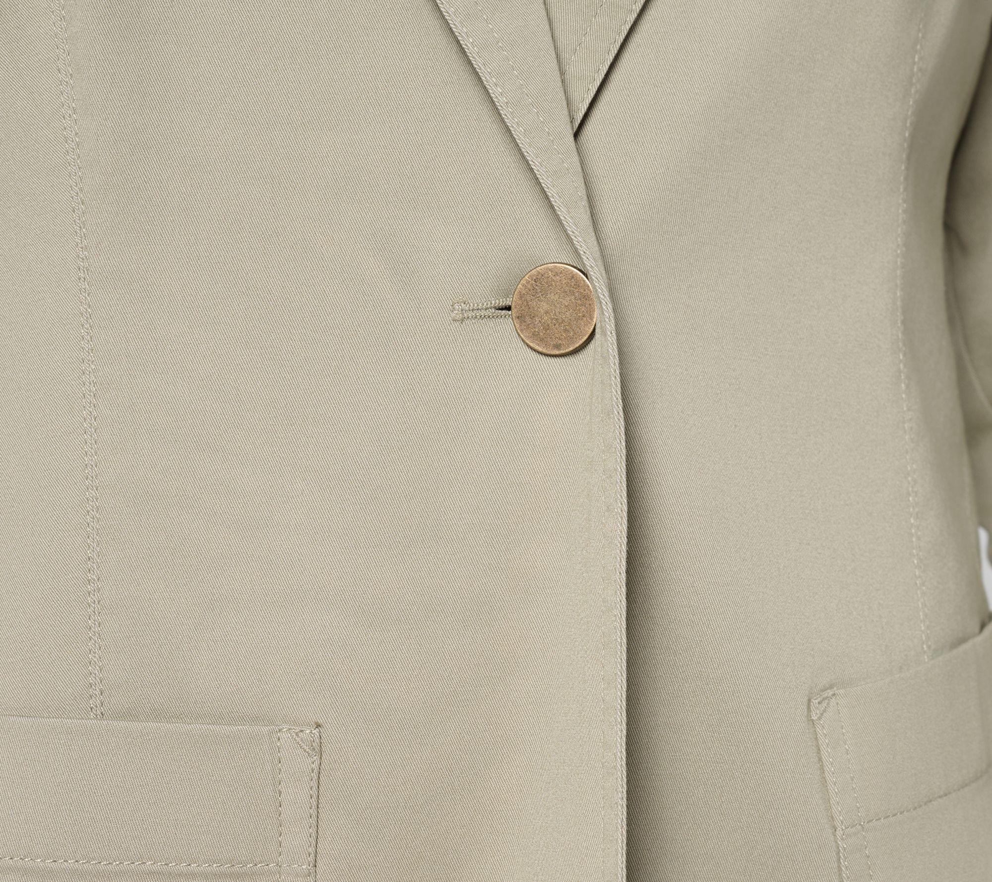 When business meetings, interviews, or lunch dates fill your calendar, you'll be glad you've got this timeless twill blazer in your closet. The softly structured silhouette, classic lapel collar, and one-button closure makes it easy to make a good first impression. And when it's time to flex from profesh polish to a more casual vibe? A touch of stretch makes the transition easier when your besties call for an after-hours meet-up. From Martha Stewart.
