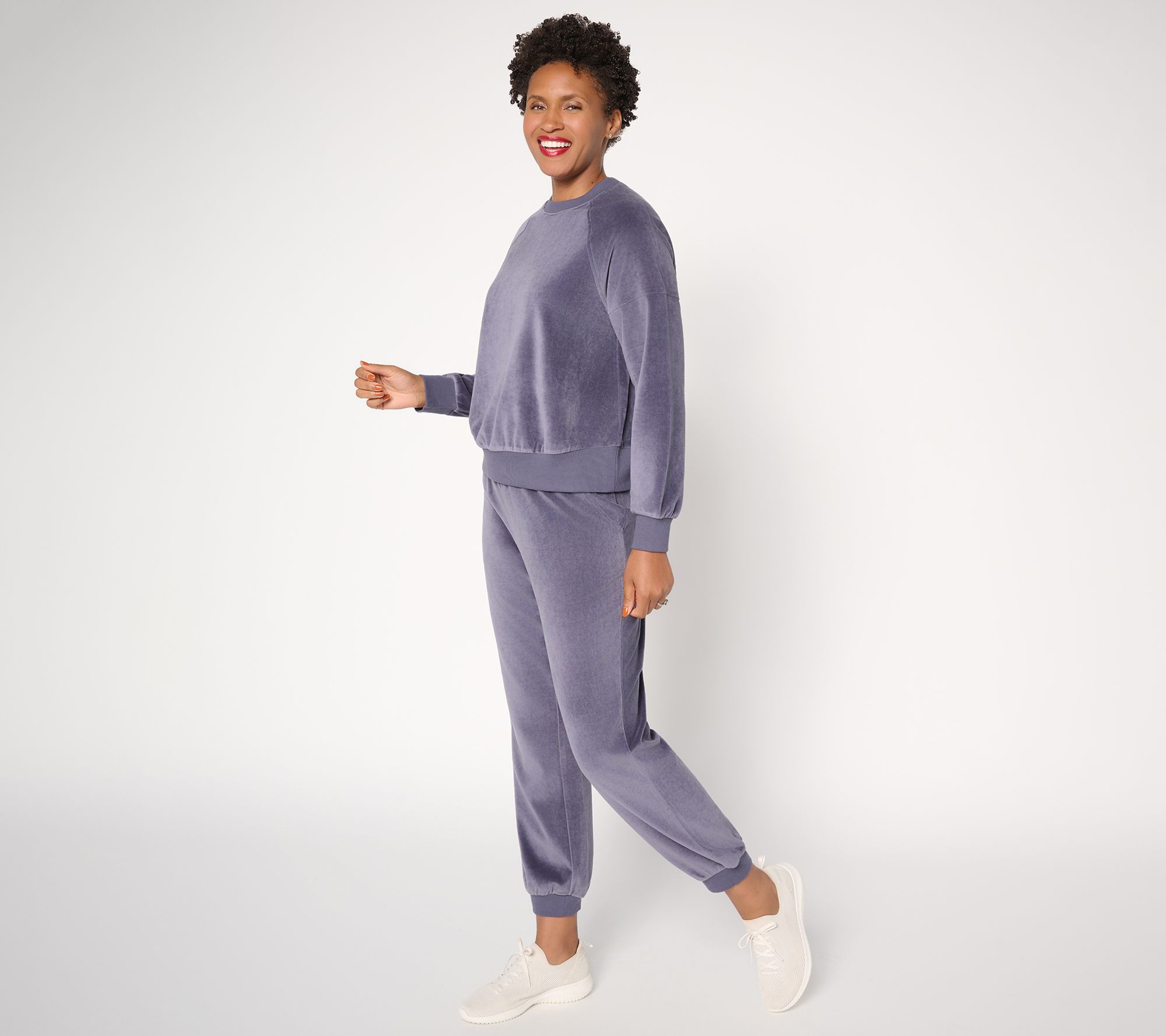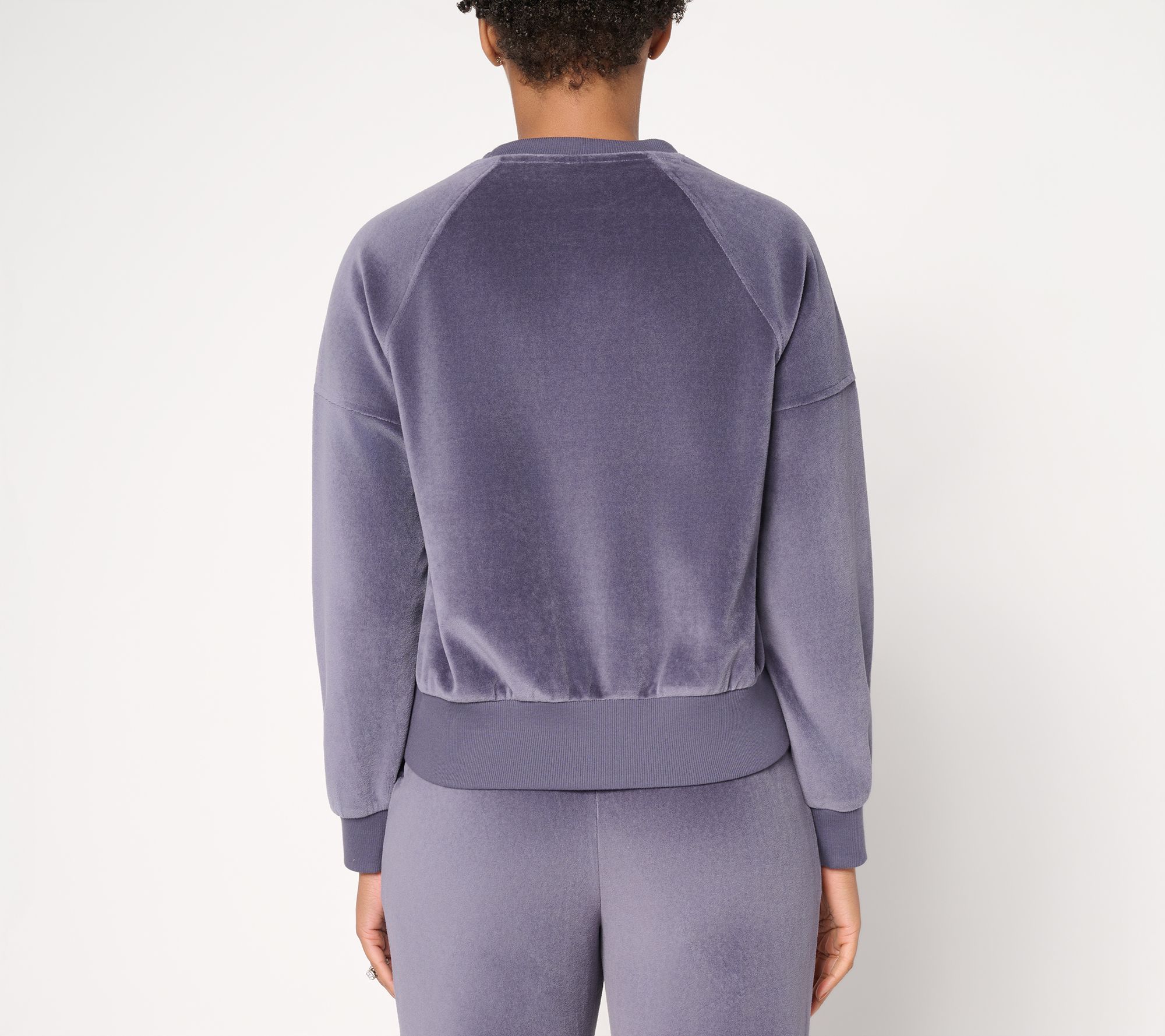Give off-duty 'fits a promotion. Martha's easy pullover adds a rich velour finish and slight sheen to your everyday routine. Whether you're in the midst of the holiday bustle or determined to deliver on downtime, this elevated crewneck creates a coziness you'll reach for again and again. From Martha Stewart.