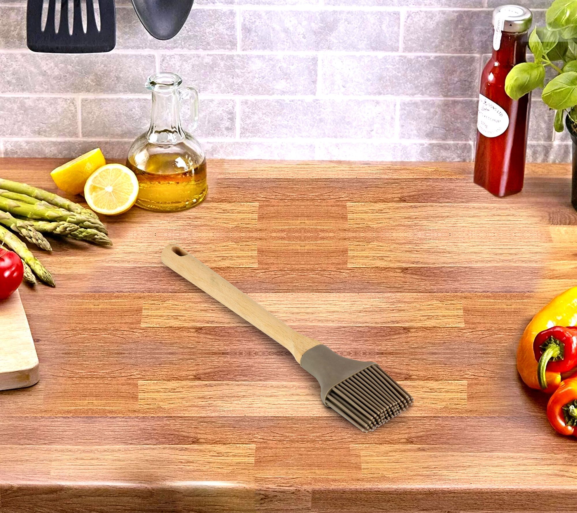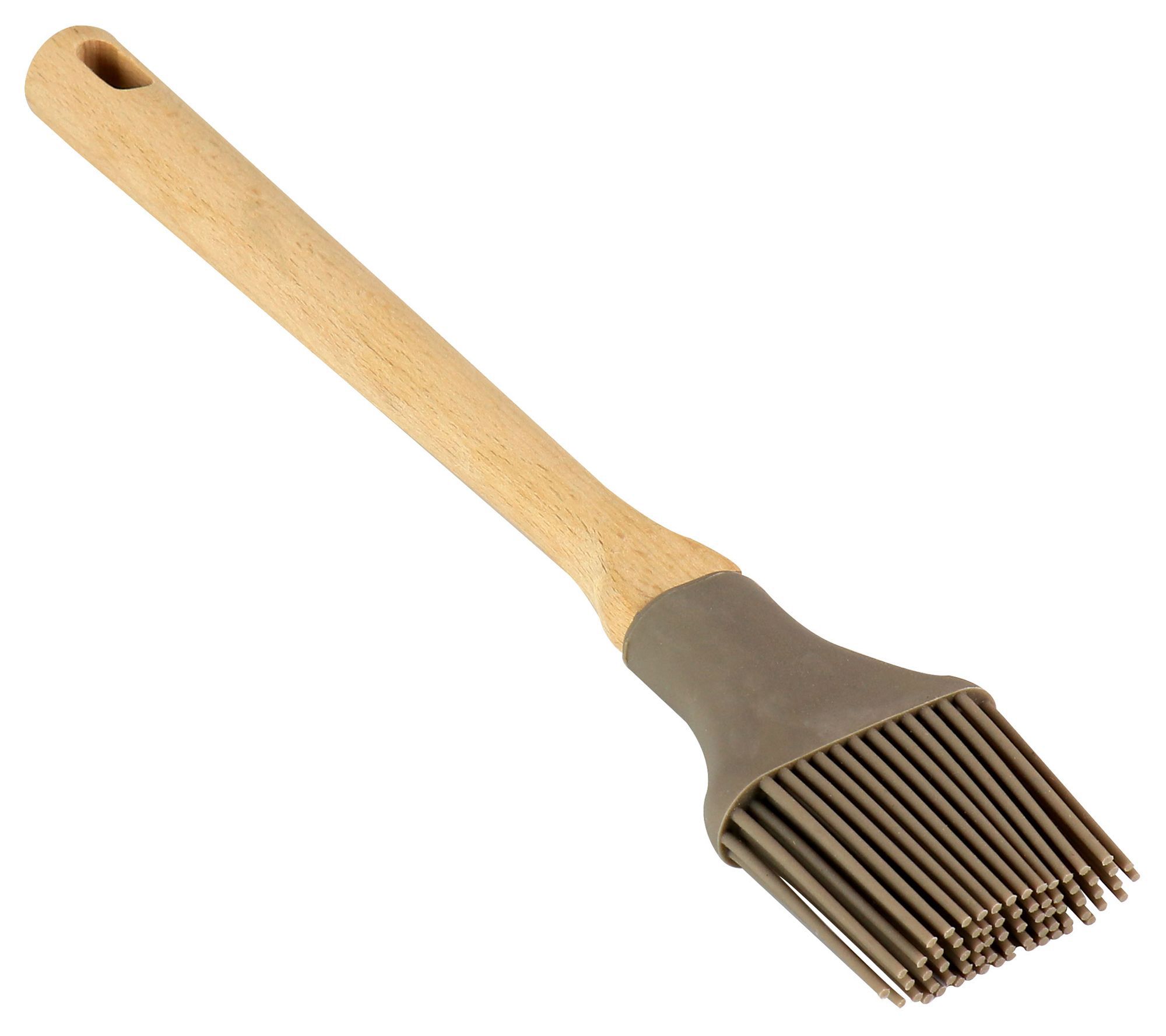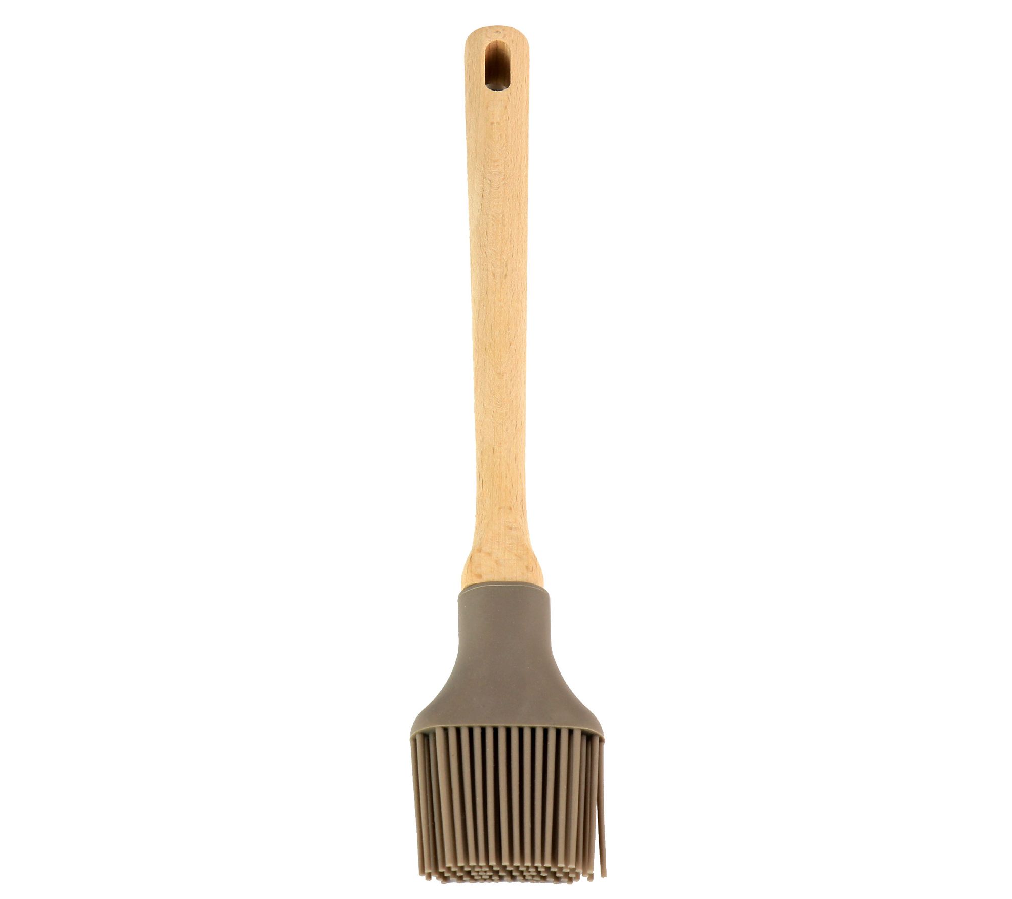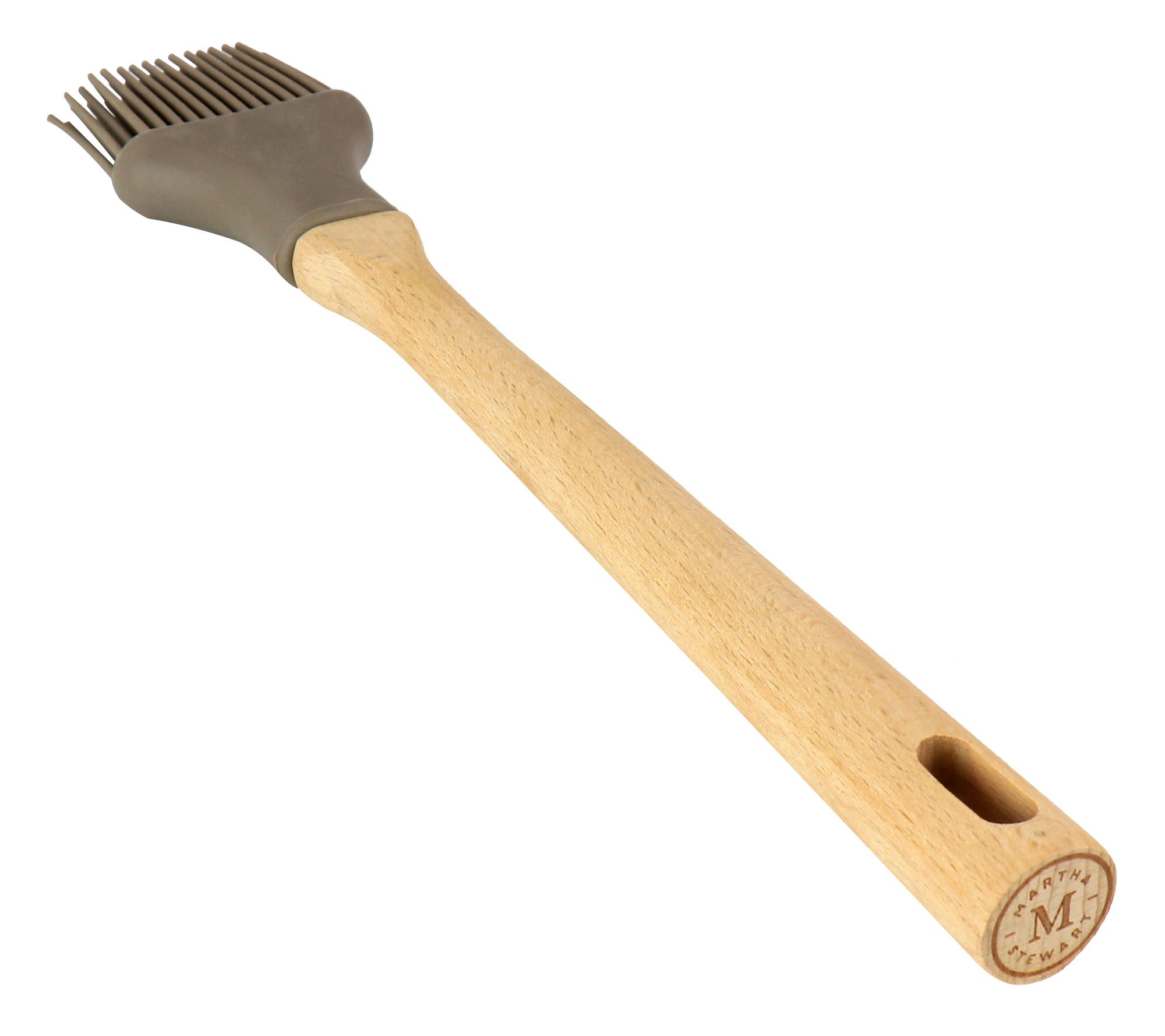 Make cooking and baking a breeze with this gray basting brush. Featuring soft, flexible silicone bristles and a beech wood handle, this brush lets you evenly spread sauces, glazes, and more. From Martha Stewart.