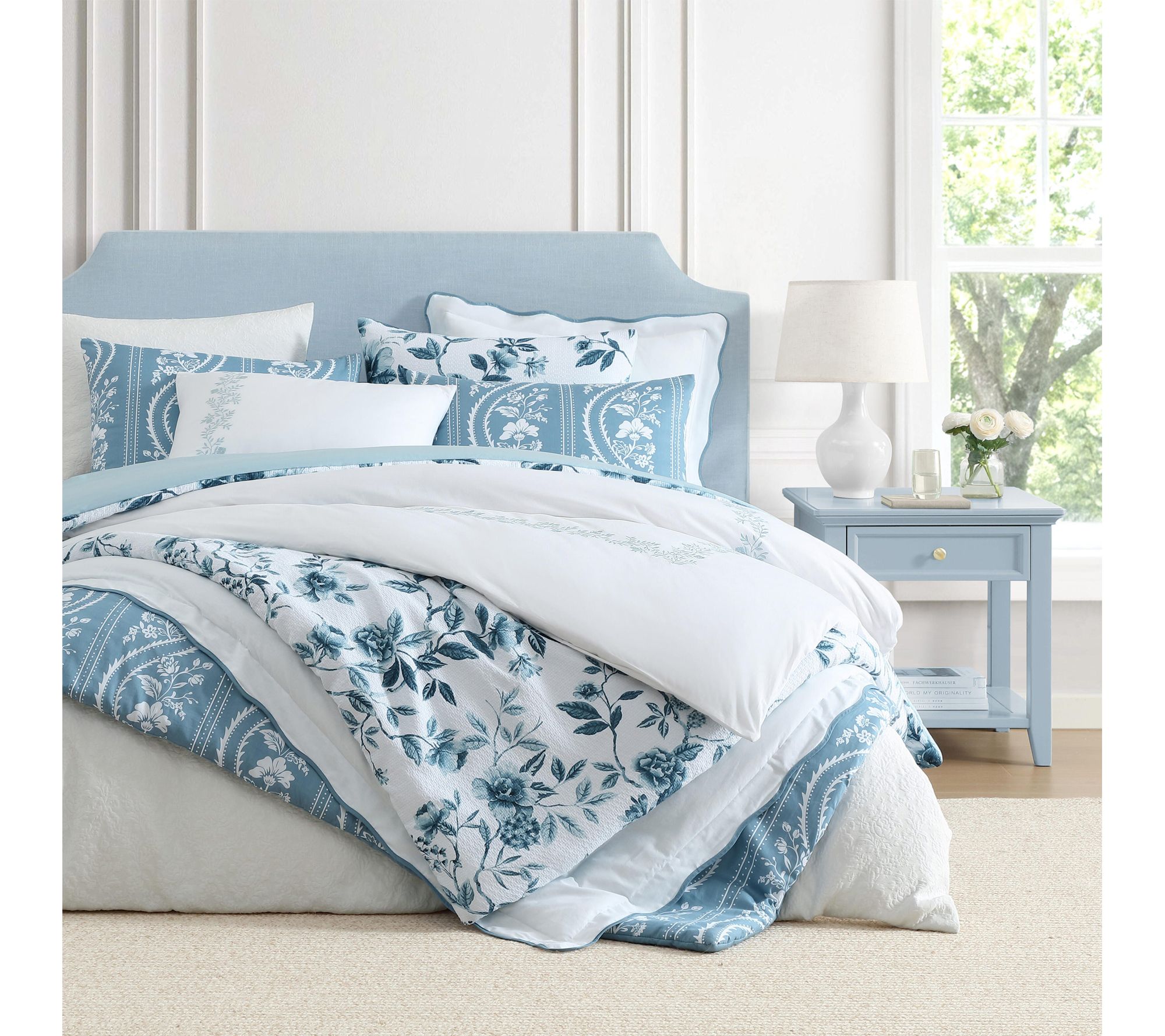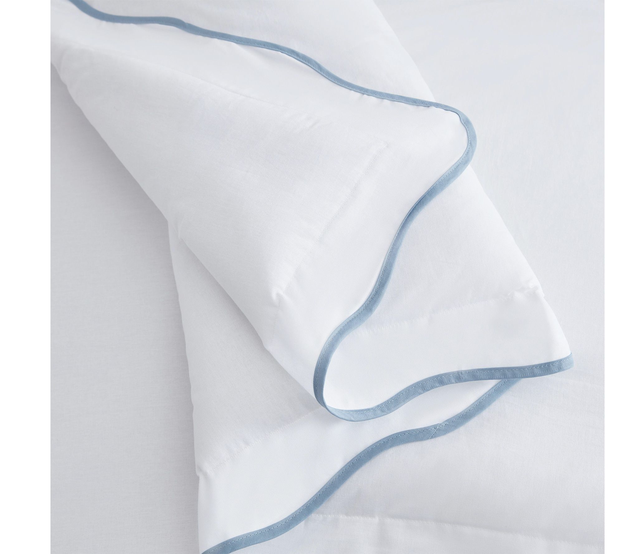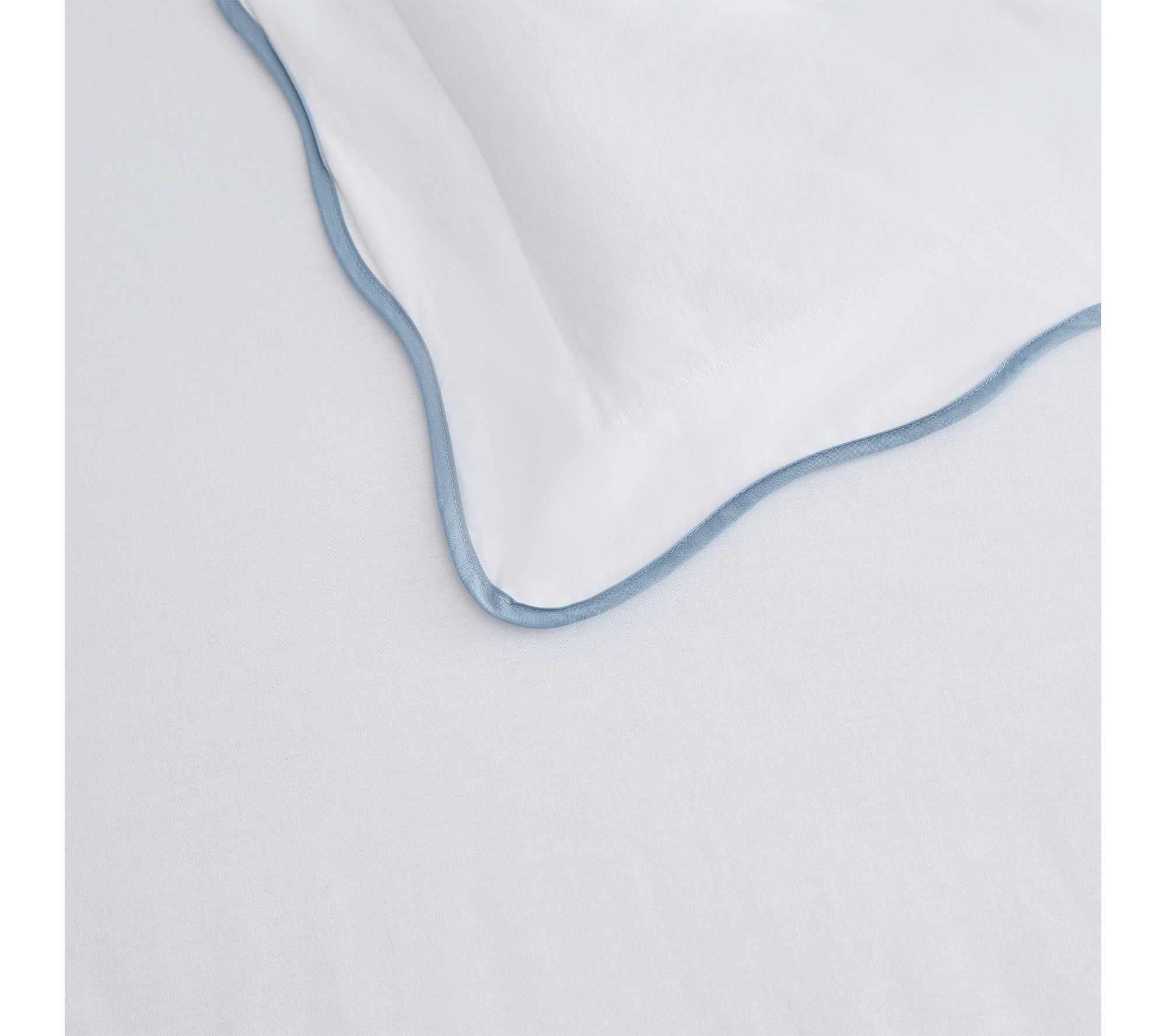 Soft blue scalloped edges bring subtle elegance to your bedroom with this king comforter set, crafted from 100% cotton for a naturally cozy and inviting feel. Enjoy the gently quilted comforter and easy envelope-closure shams, beautifully tailored for a look that's both classic and modern. Whether making over your master suite or welcoming overnight guests, this set wraps your space in understated sophistication. From Martha Stewart.
