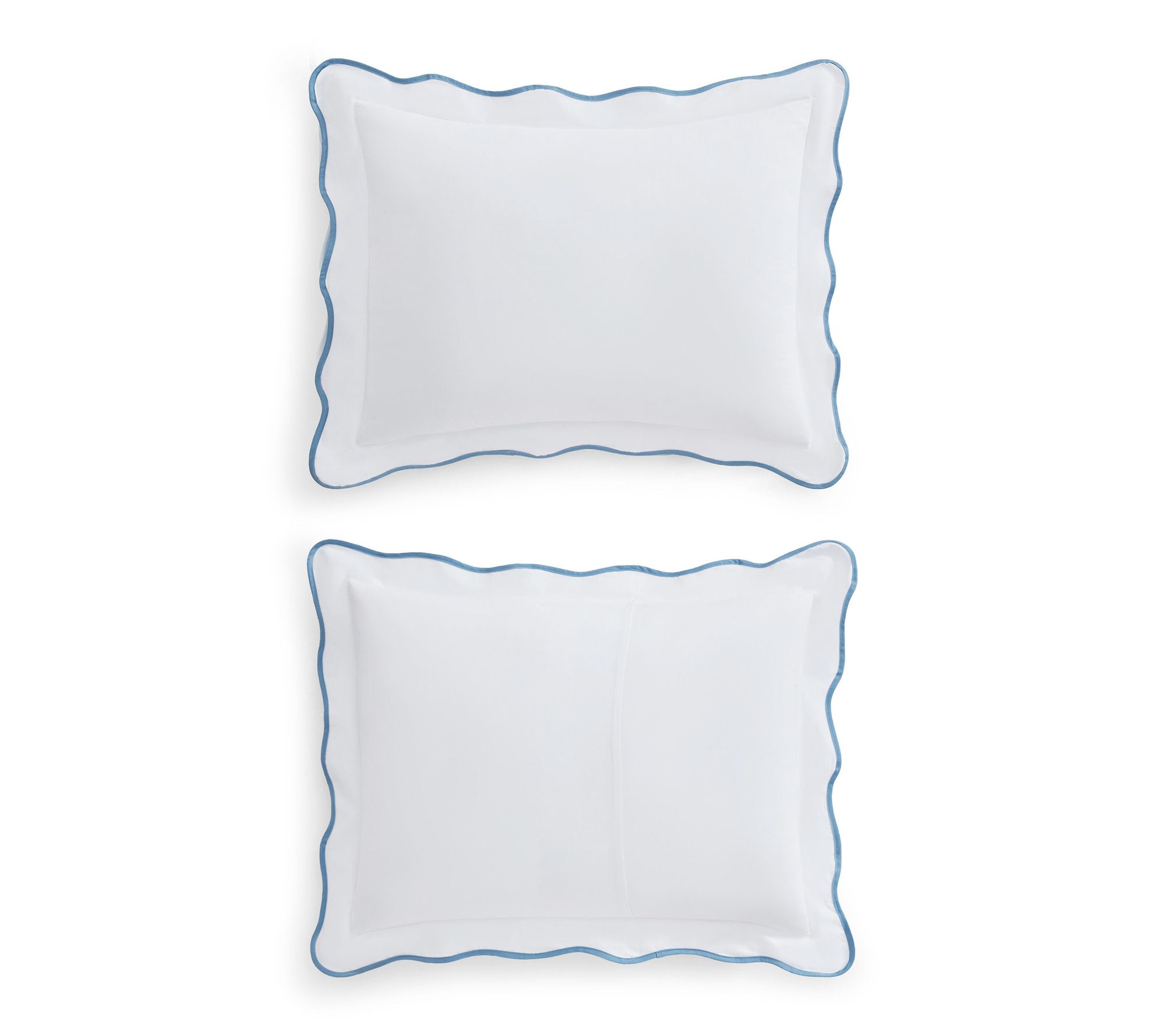 • Timeless scalloped edge with medium blue trim adds classic charm