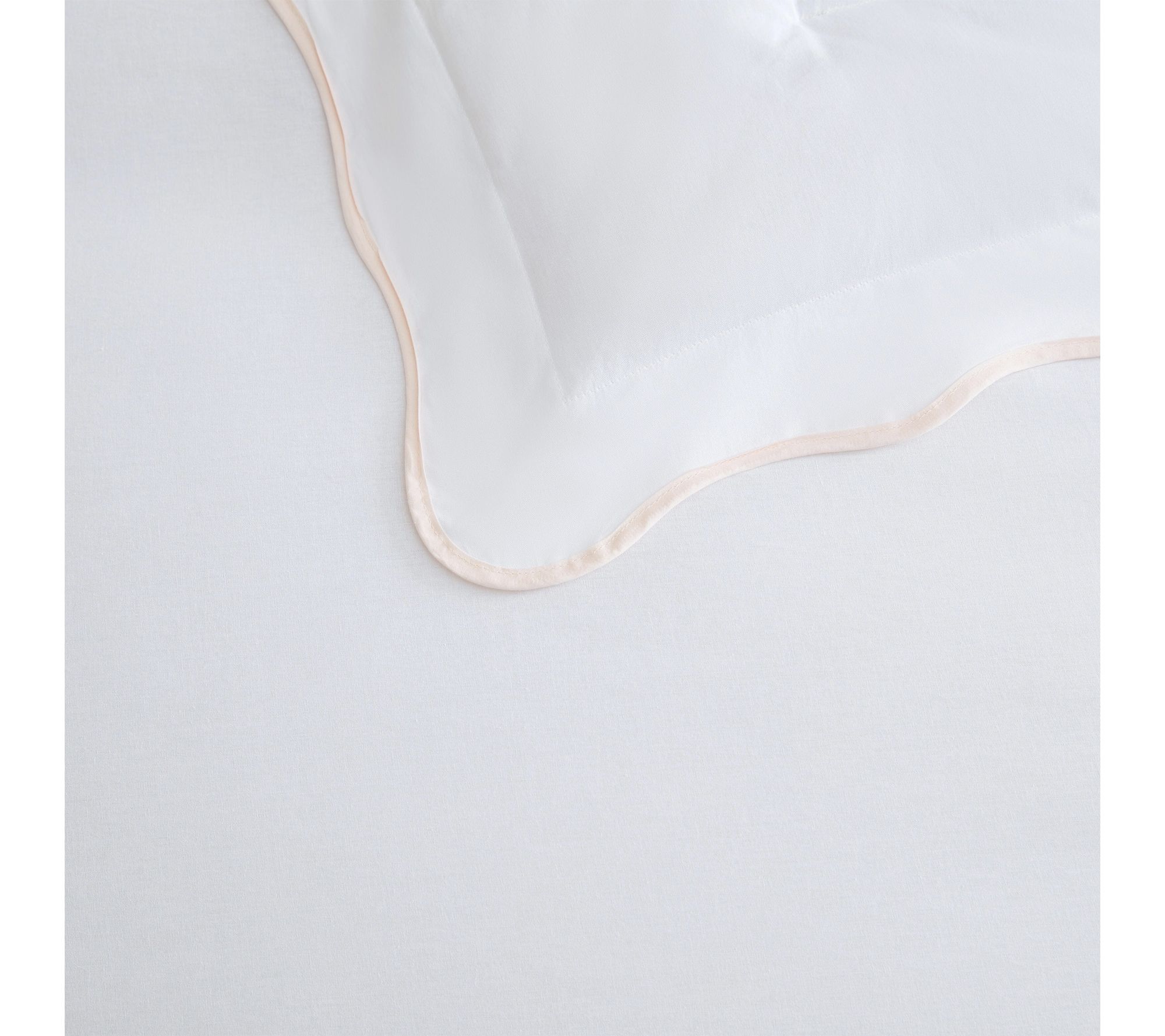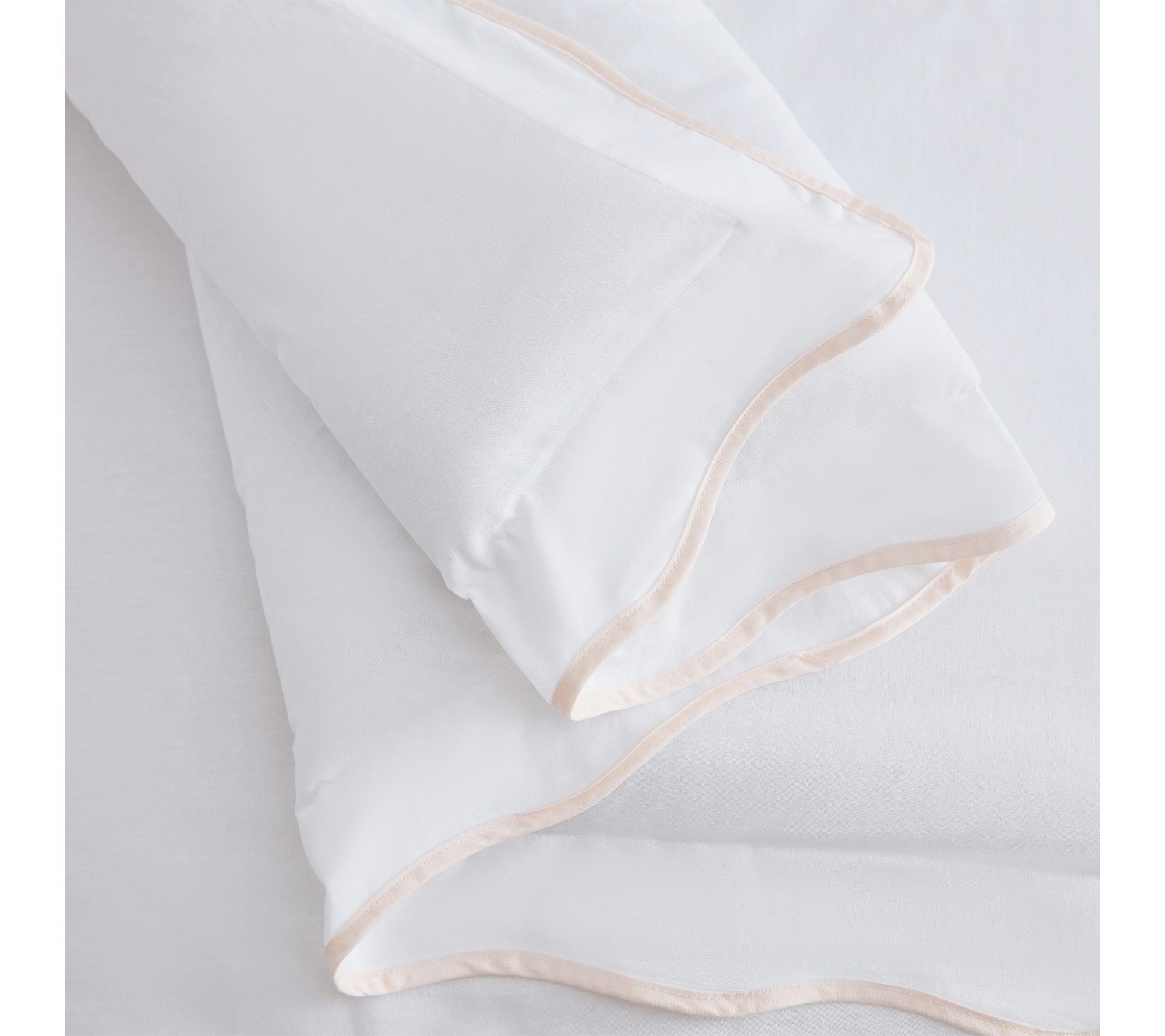• Crafted from 100% cotton with a white ground and scalloped blush pink trim for timeless style