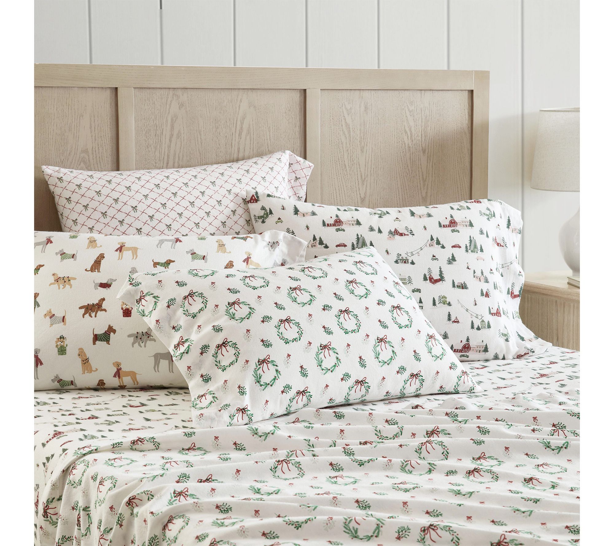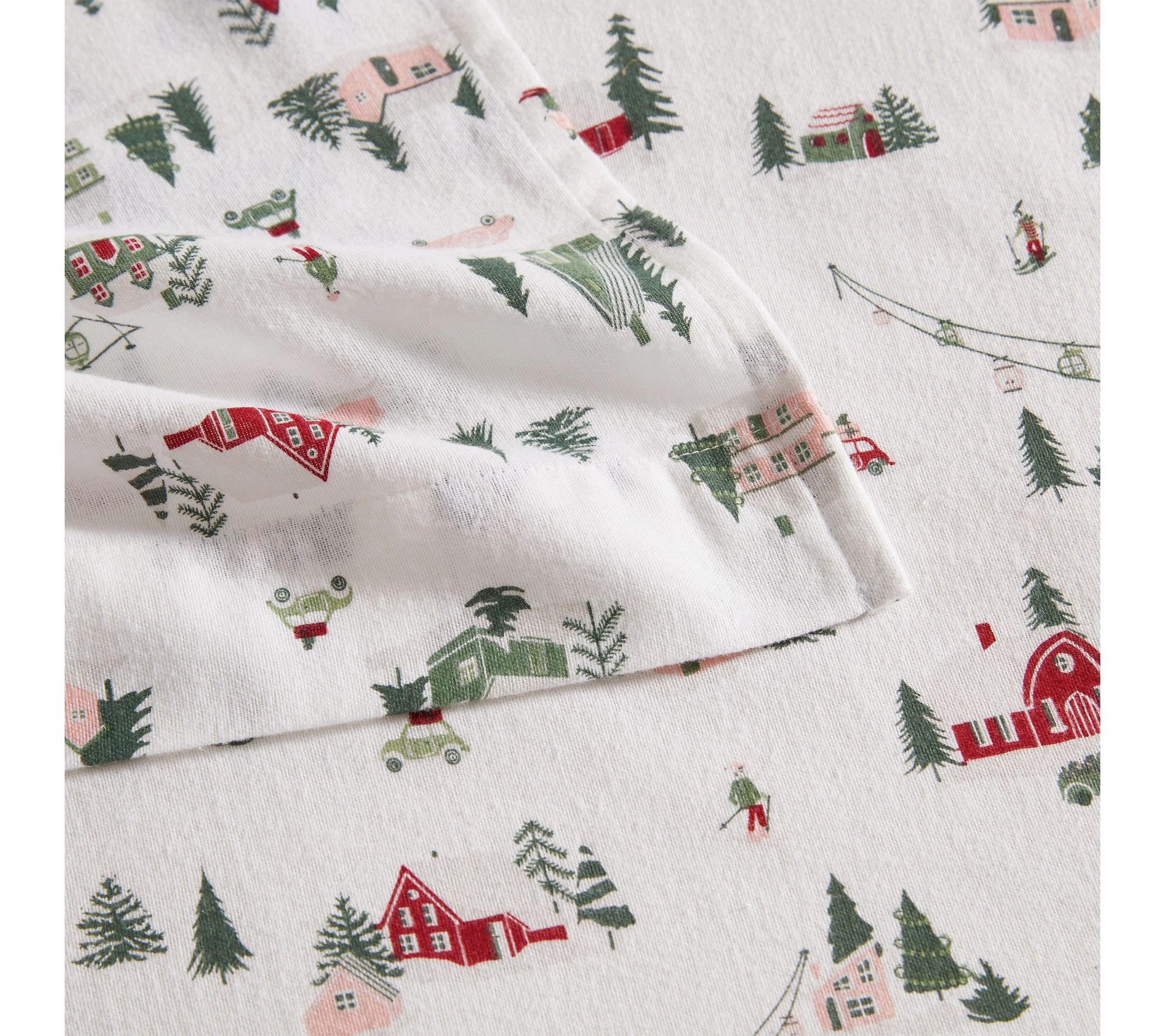 Settle in for a restful night surrounded by the charm of a snowy ski village -- these flannel sheets feature cozy cabins, skiers, and vintage winter flair that transform your bedroom into a seasonal retreat. Soft, brushed cotton gives each piece long-lasting comfort, while the whimsical design celebrates the spirit of alpine adventures. From Martha Stewart.