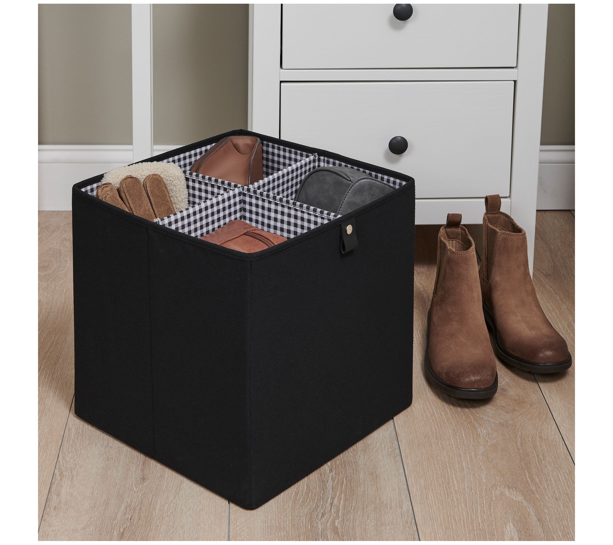 Organize your space effortlessly with these versatile storage cubes designed to keep your belongings neat and tidy. Perfect for any room, these cubes, complete with dividers, offer ample space for various items, making it easier to find what you need quickly. From Martha Stewart.