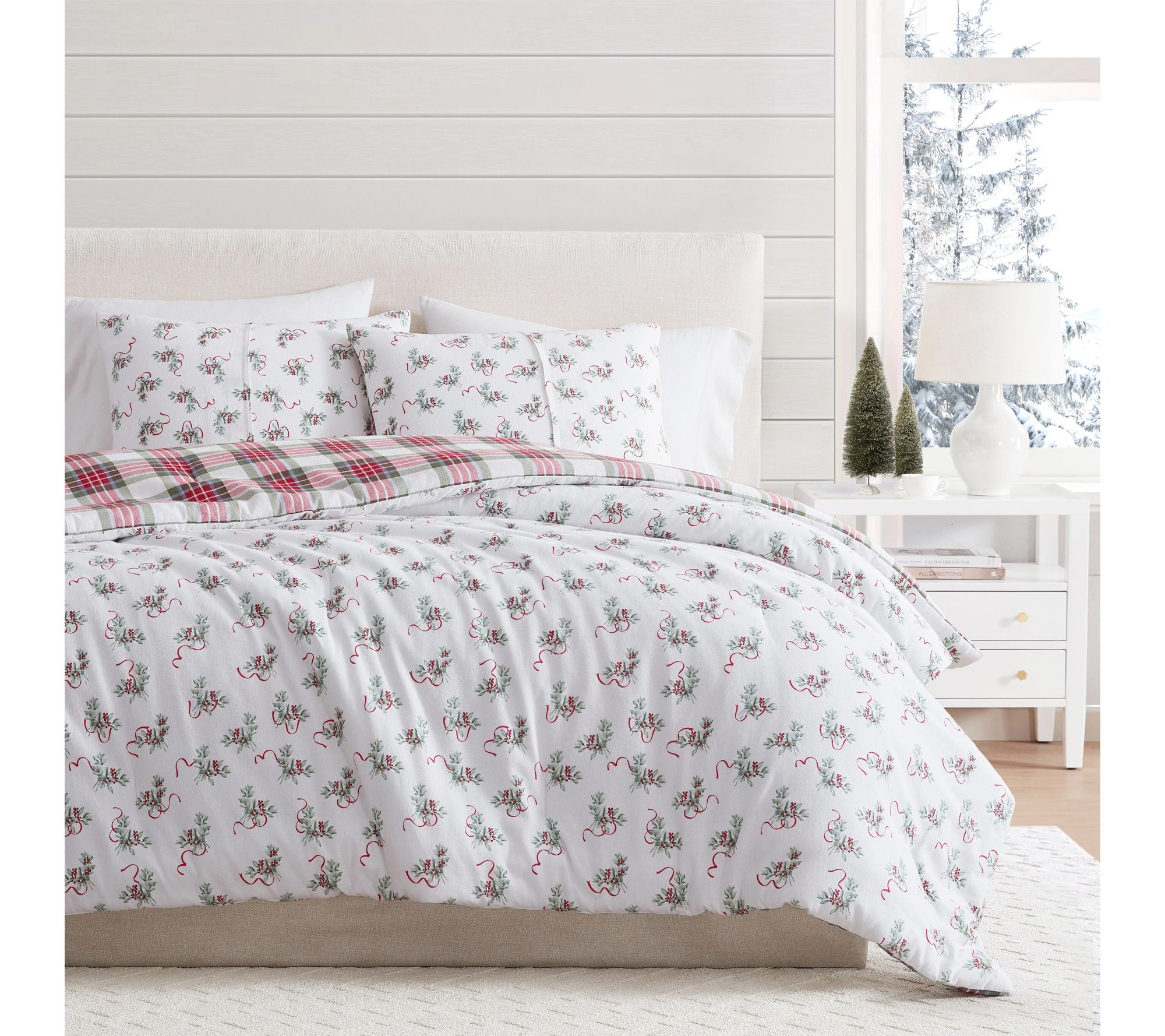 • Comforter reverses from classic plaid to holly sprig design