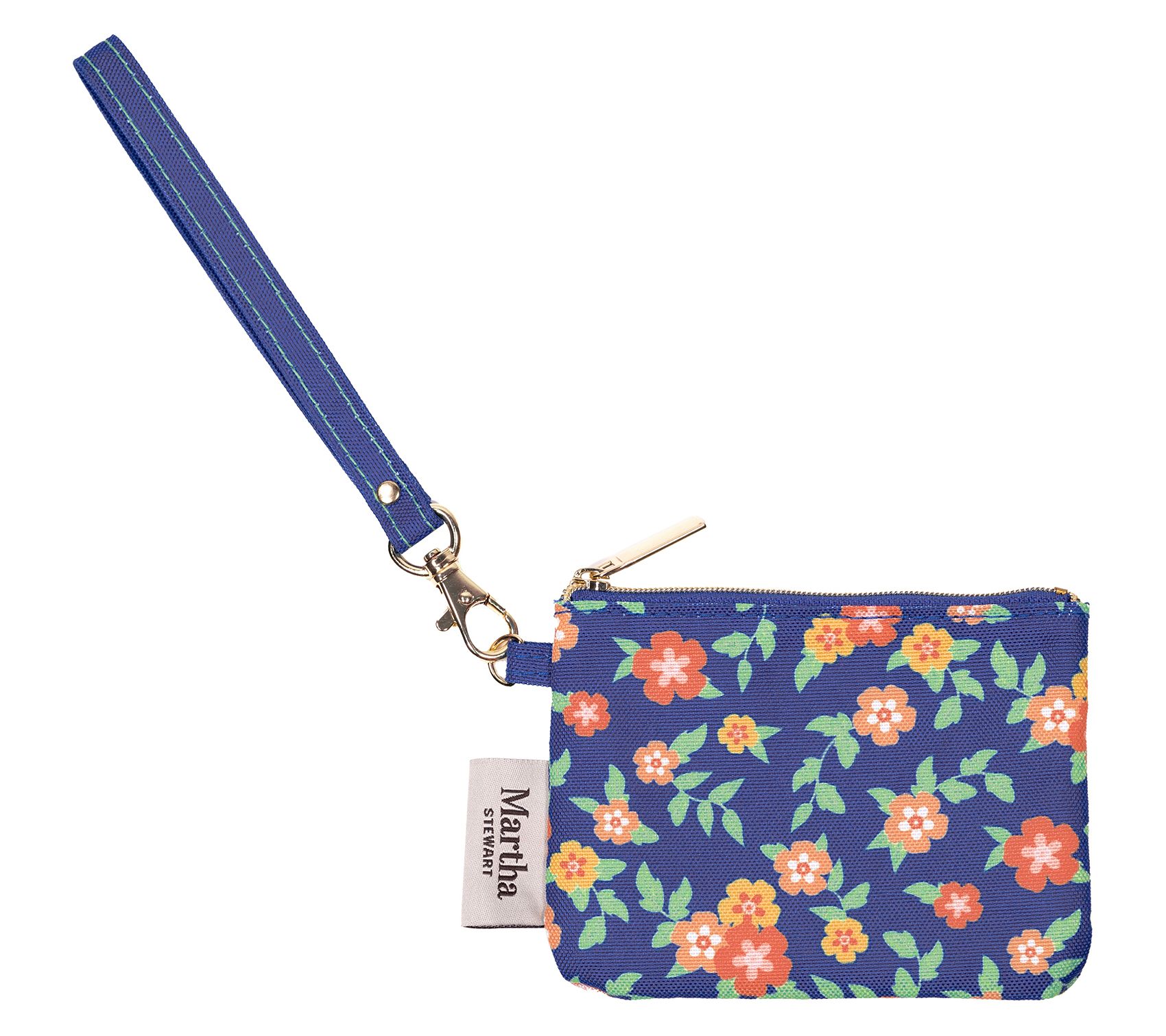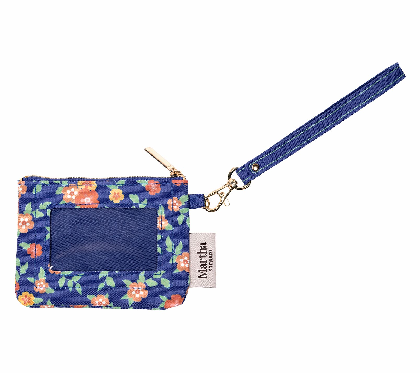 Here's to never losing track of your essentials! This Martha Stewart zip ID card holder with wristlet keeps all your important items secure and stylish at the same time. Perfect for daily use, the wristlet lanyard includes a strong metal ring for your keys or keychains. The spacious ID pocket will hold cash, coins, cards, and more, while the deep ultramarine floral print lets you express your style effortlessly. From Martha Stewart.