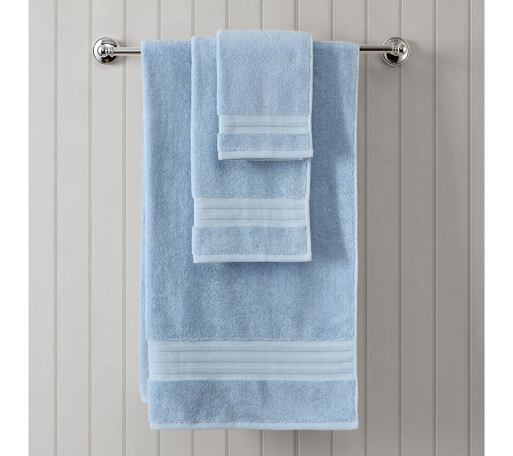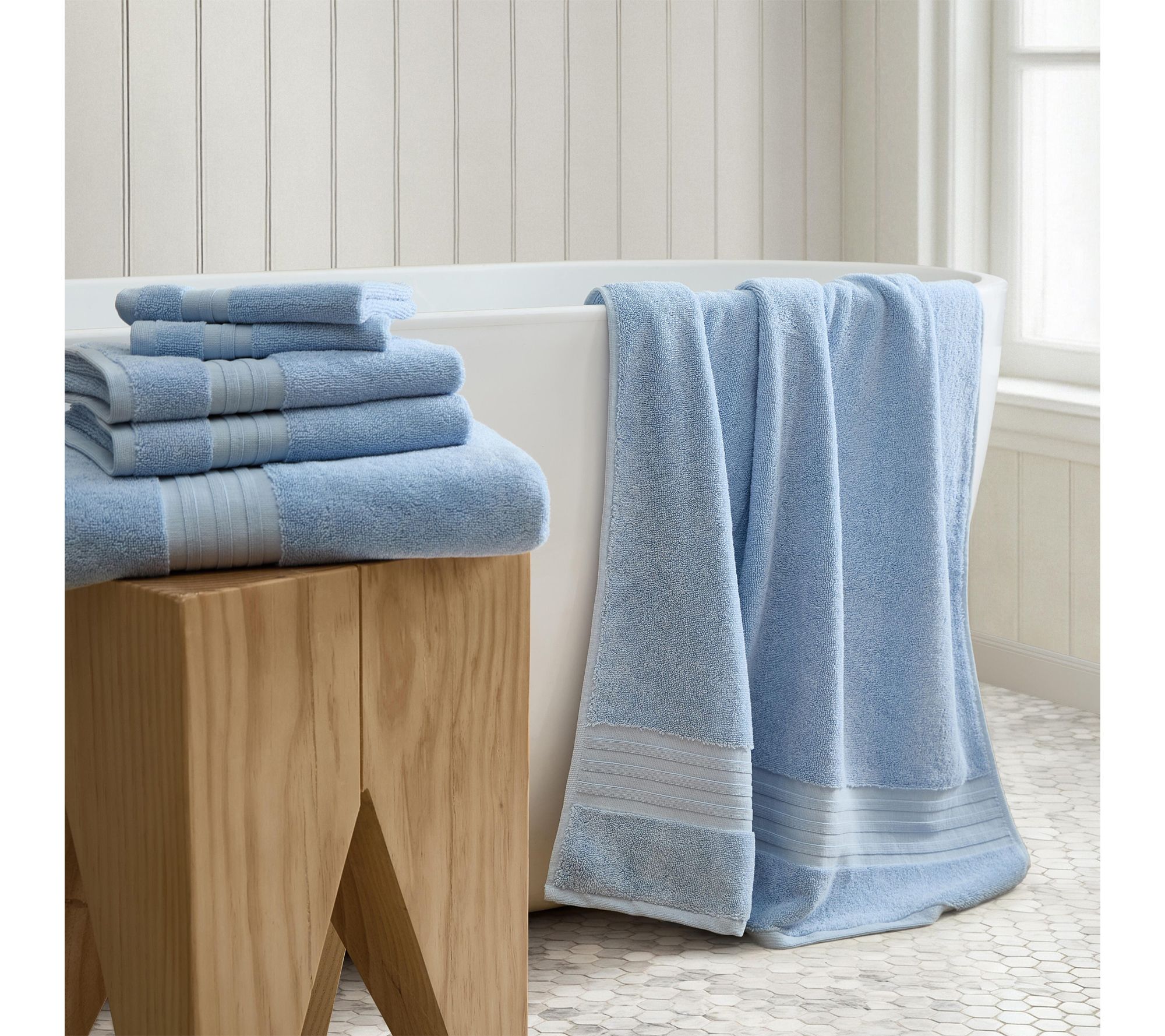 Let your bathroom become a retreat with this towel set, where every day feels a little more luxurious. The plush cotton towels envelop you in comfort, offering exceptional absorbency and softness in a calming blue hue -- ideal for both daily use and welcoming guests. From Martha Stewart.