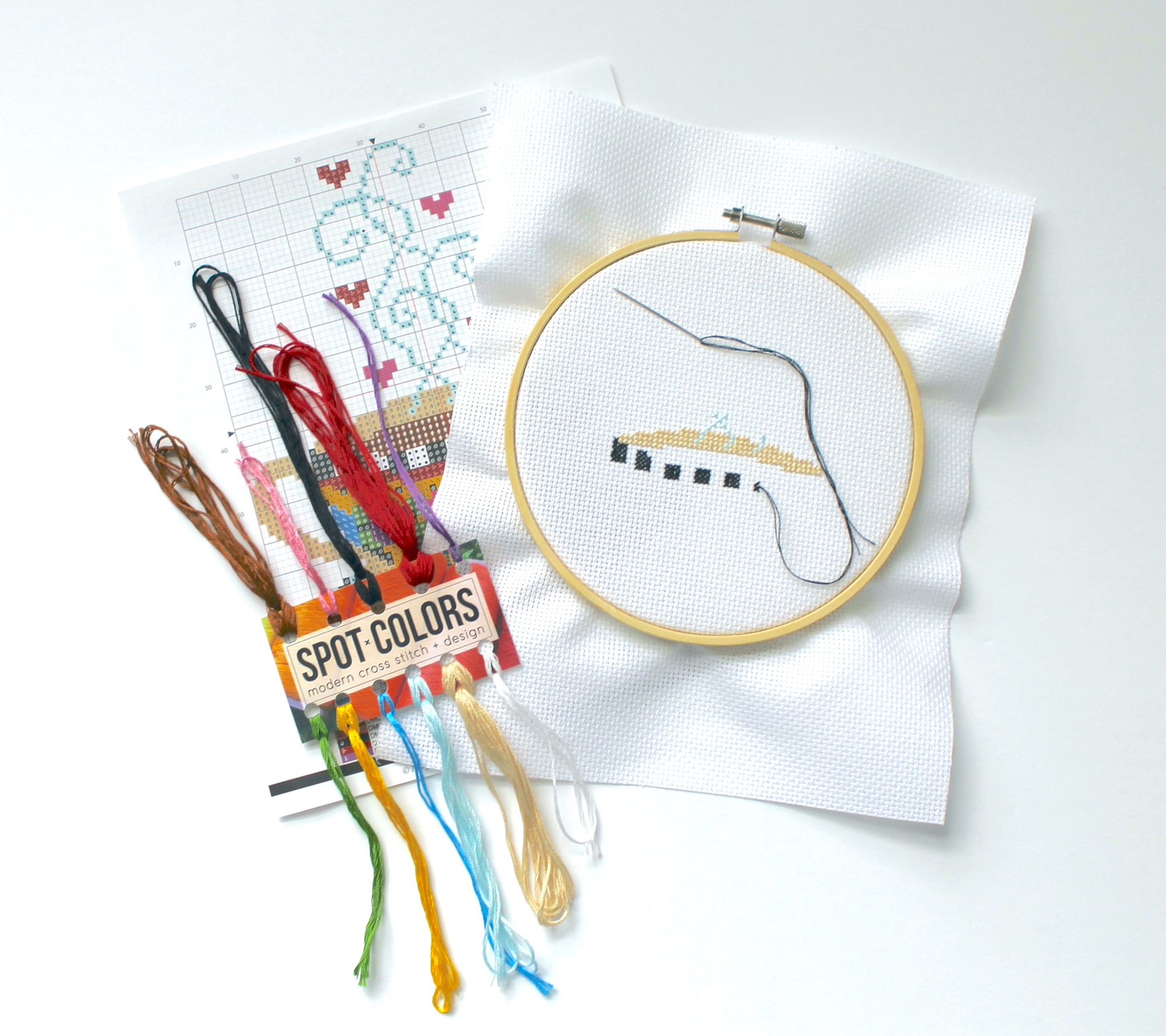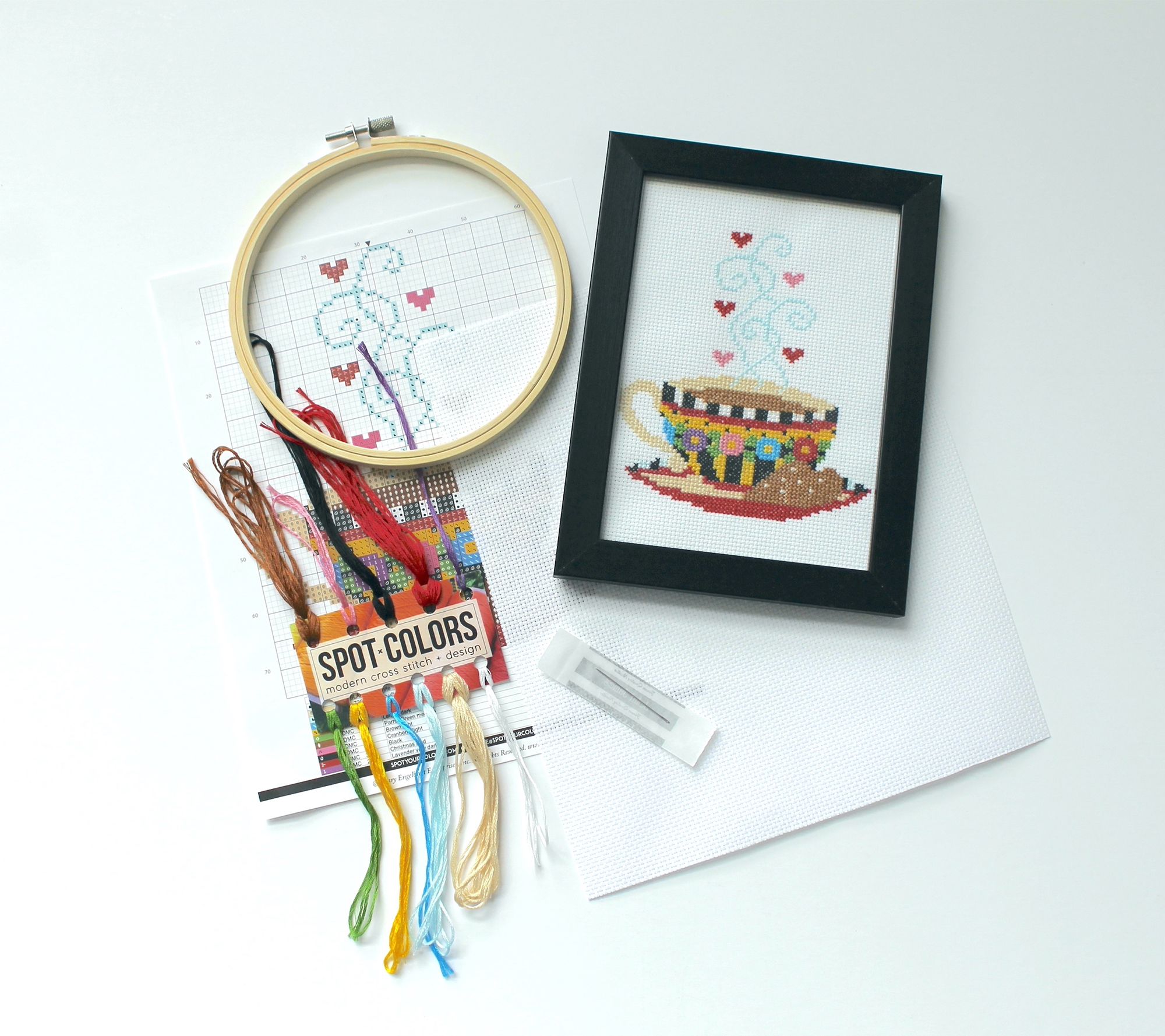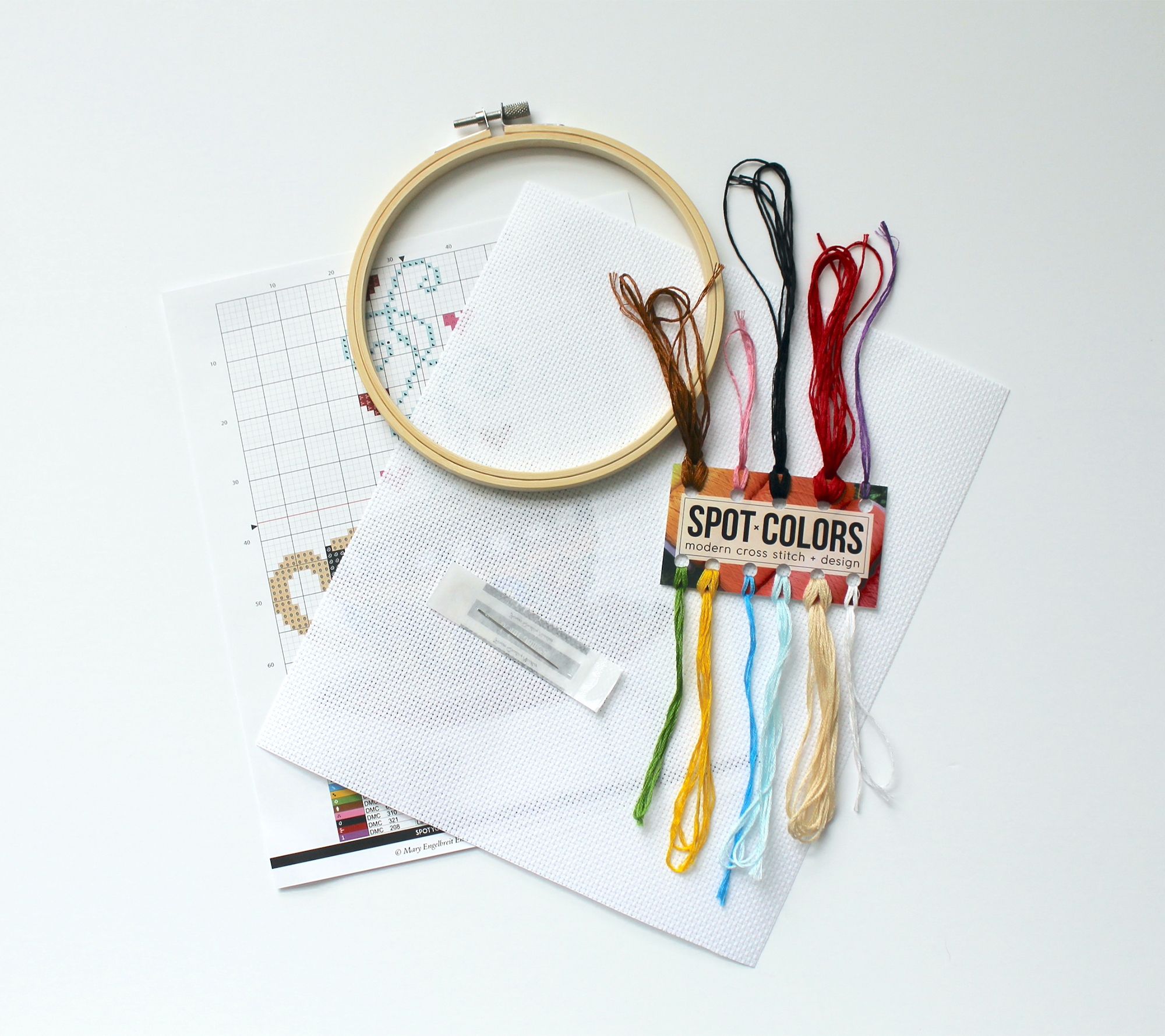 • Includes embroidery thread, needle, 14-count aida fabric, wood embroidery hoop, pattern, and instructions
