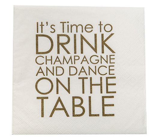 Whether it's a birthday, a wedding, or a New Year's Eve bash, these cocktail napkins ensure your celebration is infused with fun and flair. The phrase "It's Time To Drink Champagne And Dance On The Table" will set the perfect playful tone for any gathering. Stock up on these white and gold napkins and elevate your party to a memorable event. From Mary Phillips Designs.