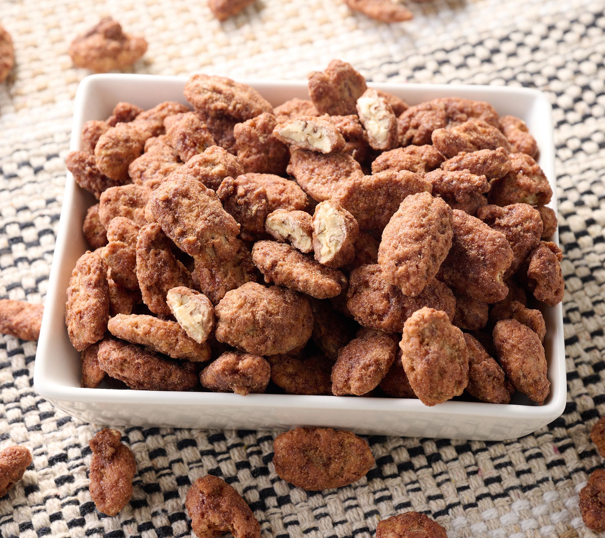 A Southern landmark, brought to you. People go crazy over these fresh Georgia pecans and it's no wonder: they're lip-smacking good, whether you fall above or below the Mason-Dixon line. Coated in cinnamon and butter, then toasted to perfection, this sweet and crunchy treat makes a mouthwatering snack. From Mascot Pecan Company.