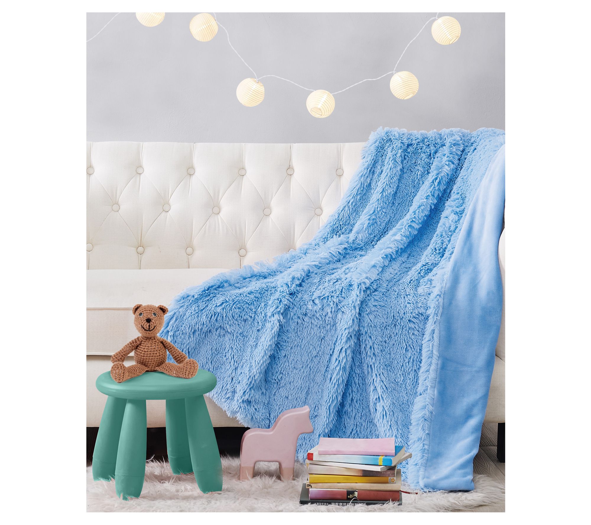 Curl up on the couch when the temperatures drop covered in the cozy warmth of this fuzzy throw boasting a reversible design that lets you change up your decor in a snap. From Mason & Mollie.