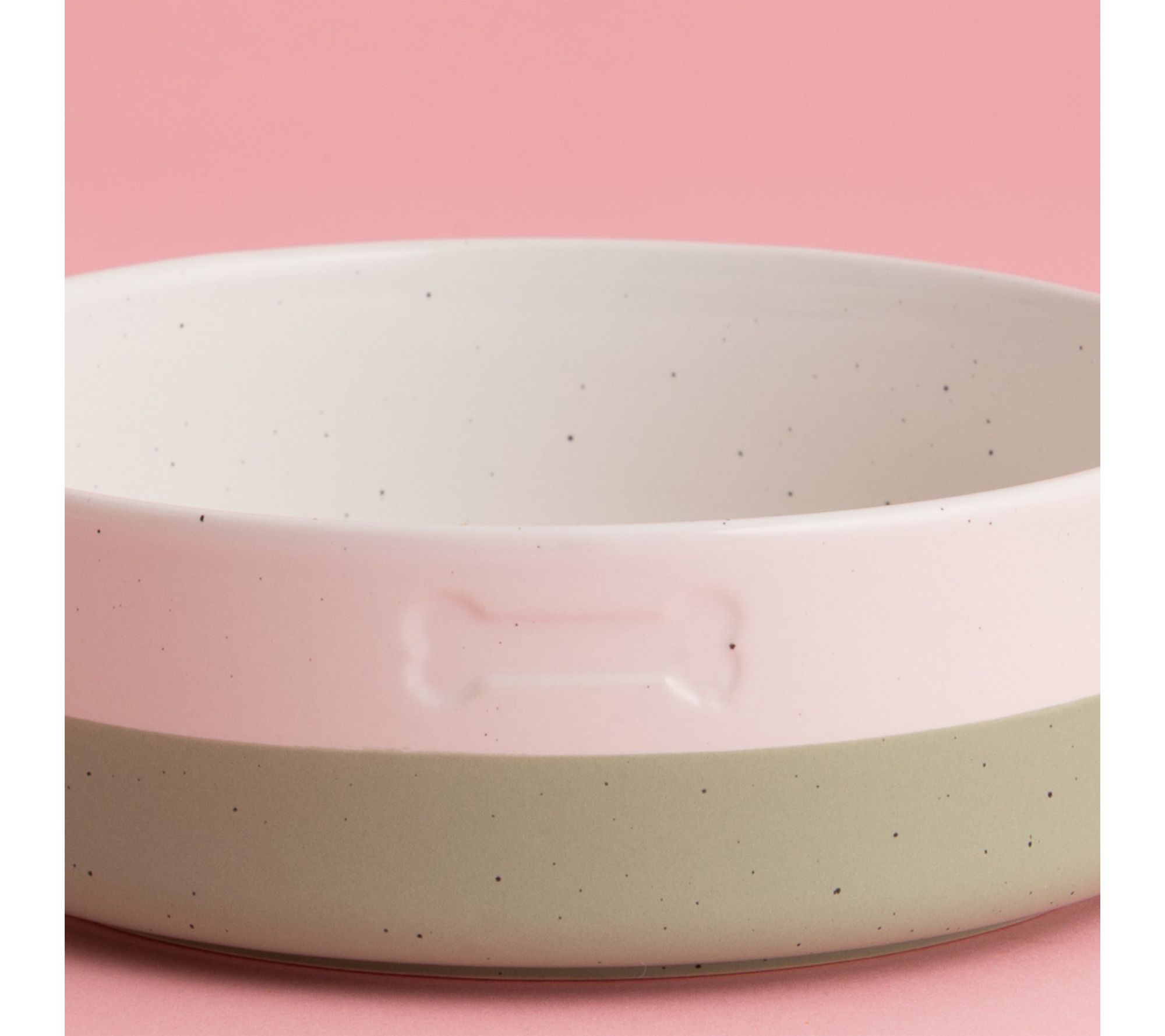 • Speckle glaze finish with color dip accent and debossed bone detail
