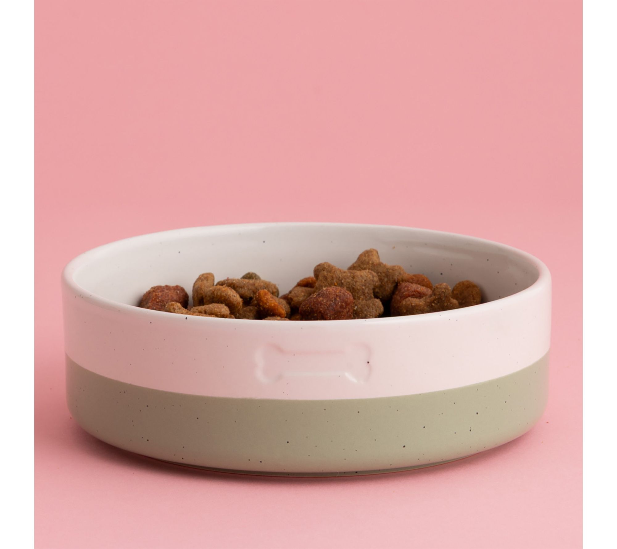 Whether it's breakfast, dinner, or a quick water break, this ceramic dog bowl brings style and function to every meal. The thick, chip-resistant stoneware and speckled glaze finish add a touch of charm to your pet's feeding area, while the weighted design helps minimize spills for medium to large dogs. From Mason Cash.