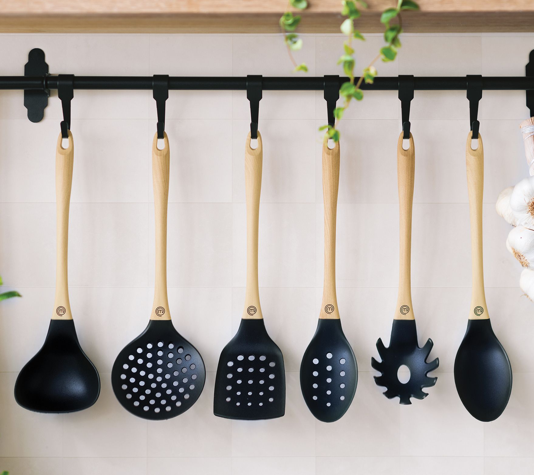 Get a handle on dinner with help from this 6-piece utensil set, featuring a spoon, slotted turner, skimmer, ladle, pasta spoon, and slotted spoon. From MasterChef.