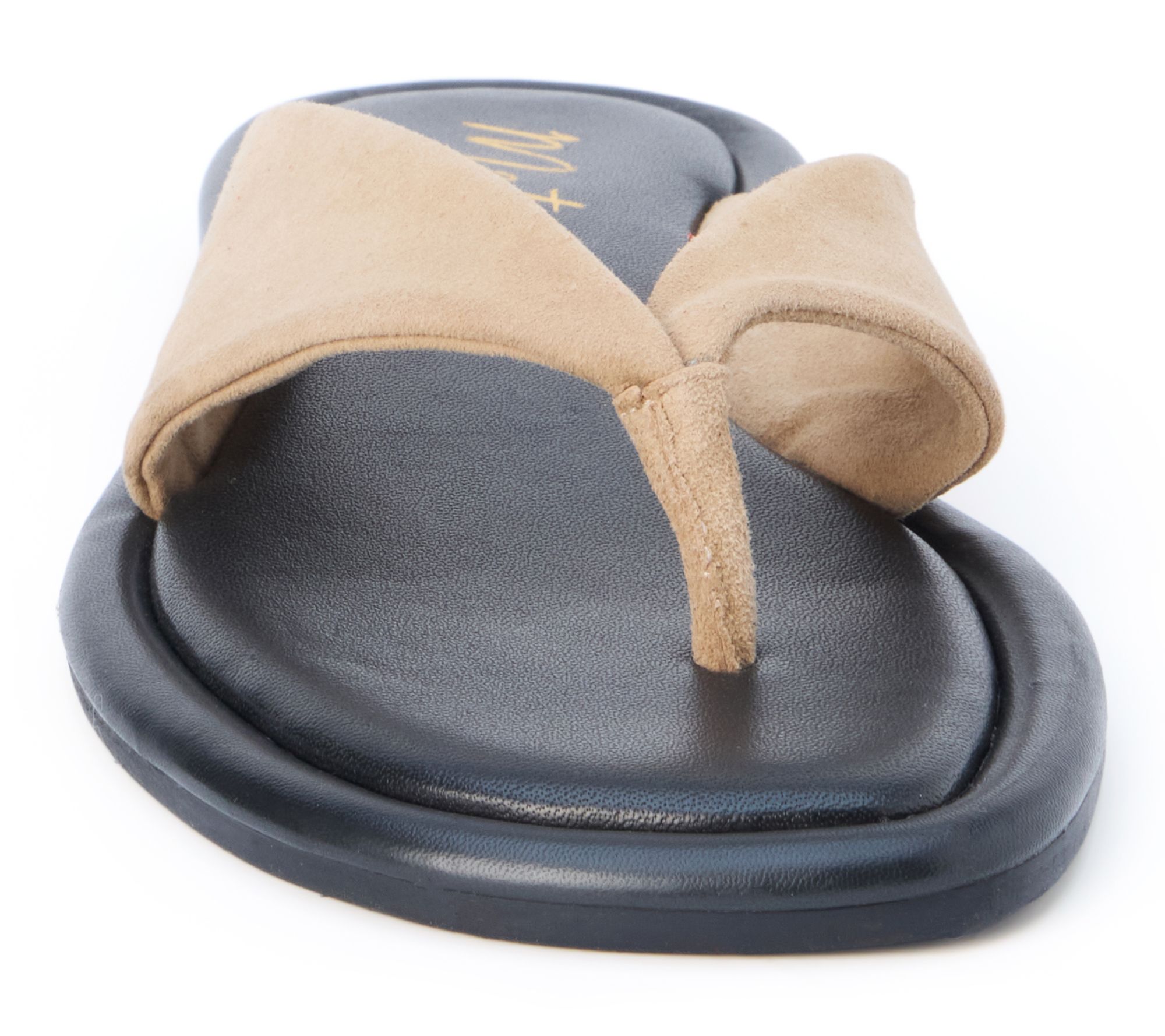 • Flat, unstructured thong sandal with flared straps