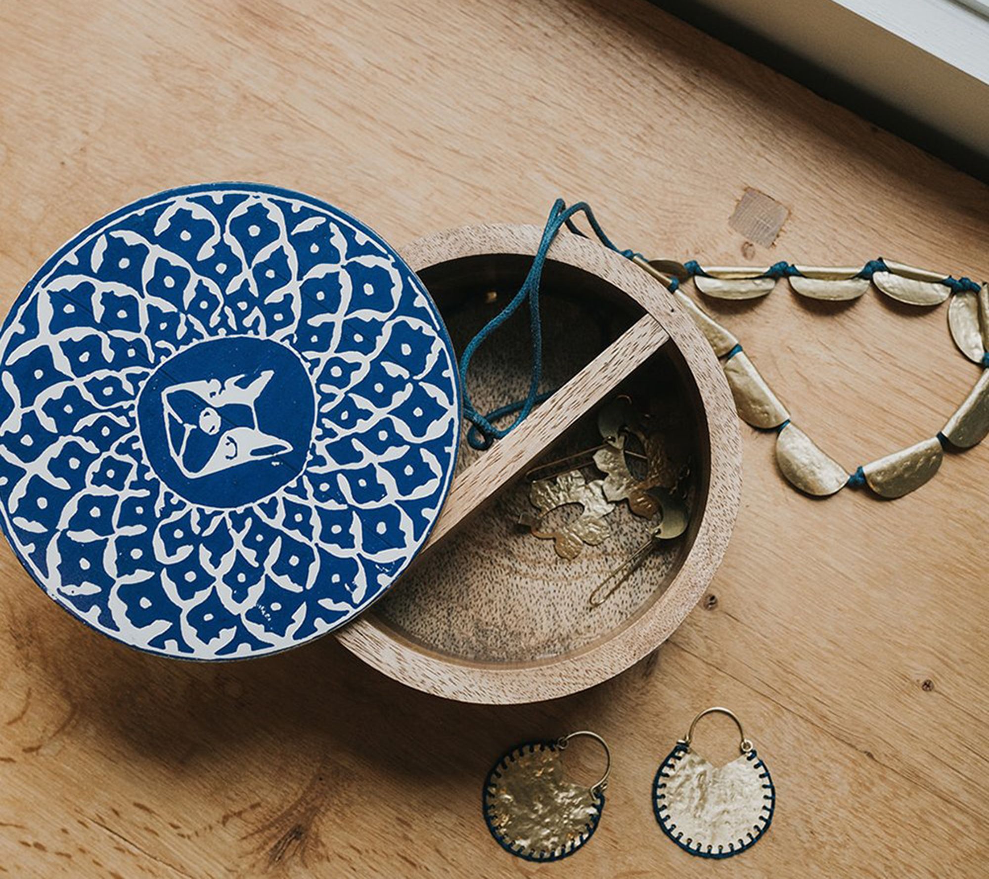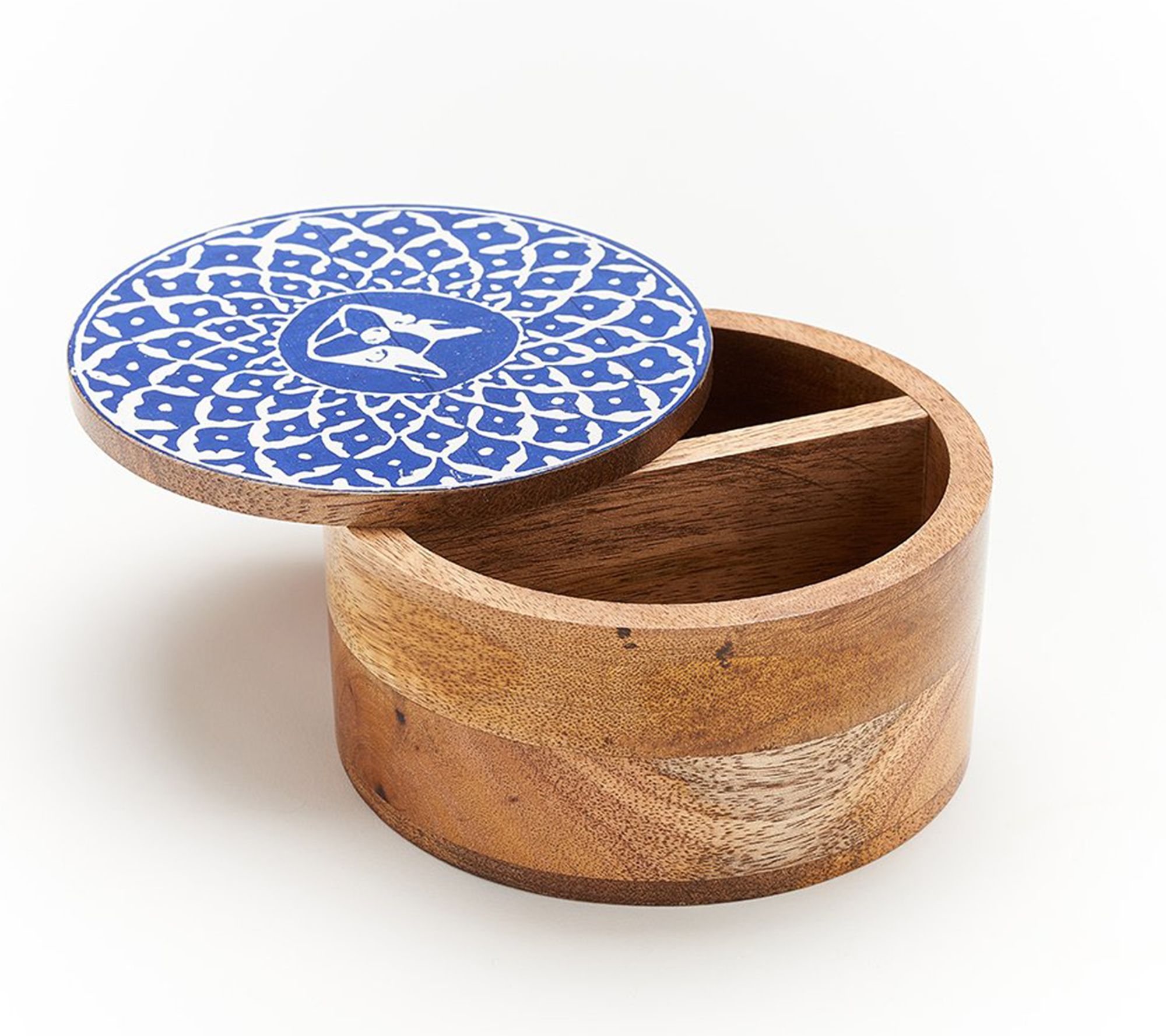 Ethically handcrafted from sustainably harvested mango wood, this cylinder mango wood box is a wonderful spot for your keepsakes on any tabletop. From Matr Boomie.