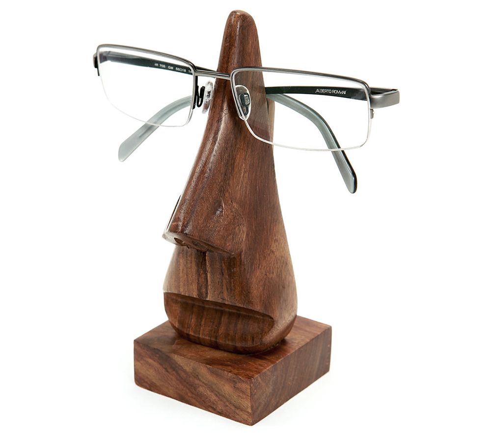 Funky yet functional, this wooden nose is a great way to keep track of your eyeglasses. From Matr Boomie.