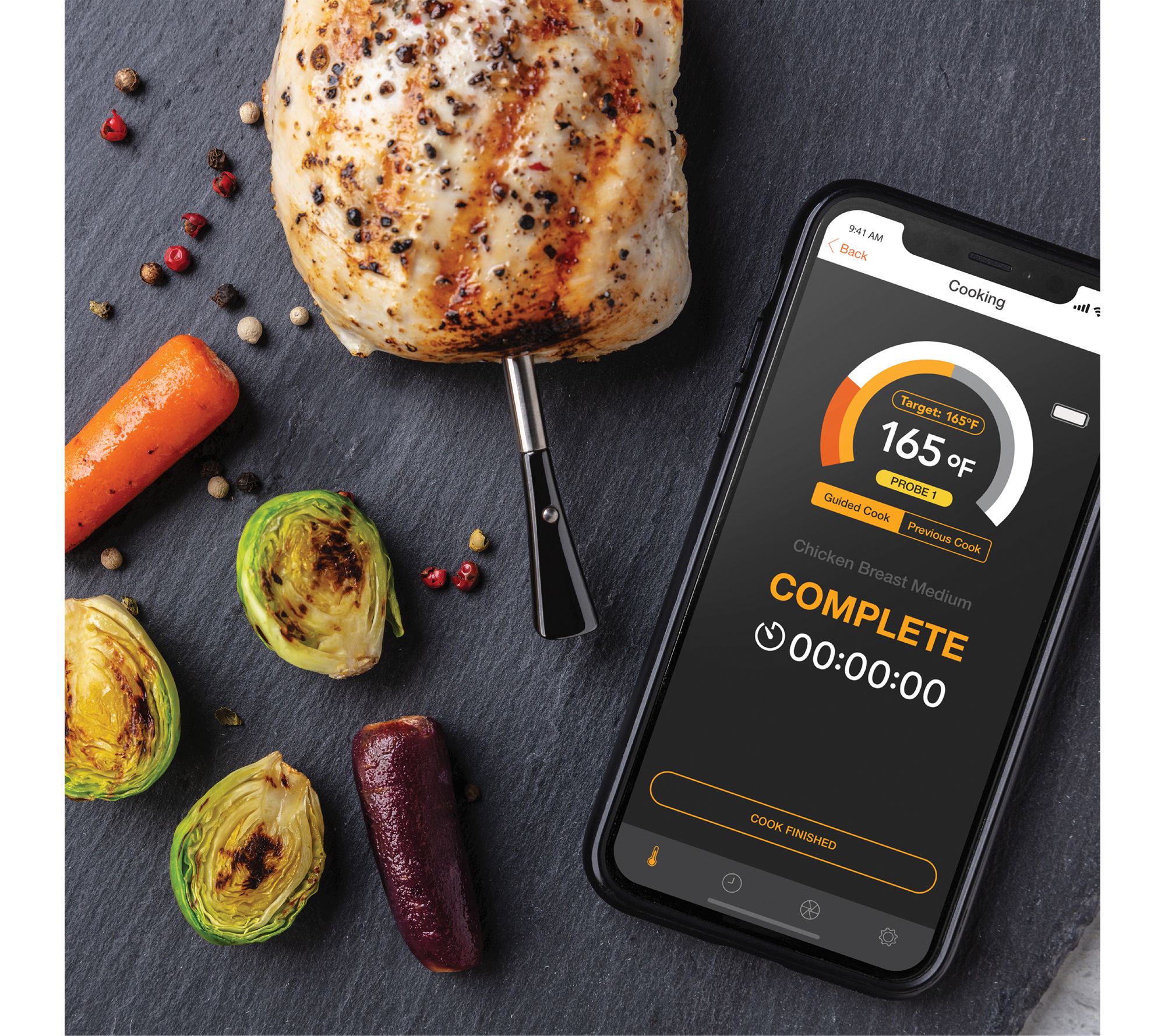• App displays temperature, elapsed time, and cook progress graphs