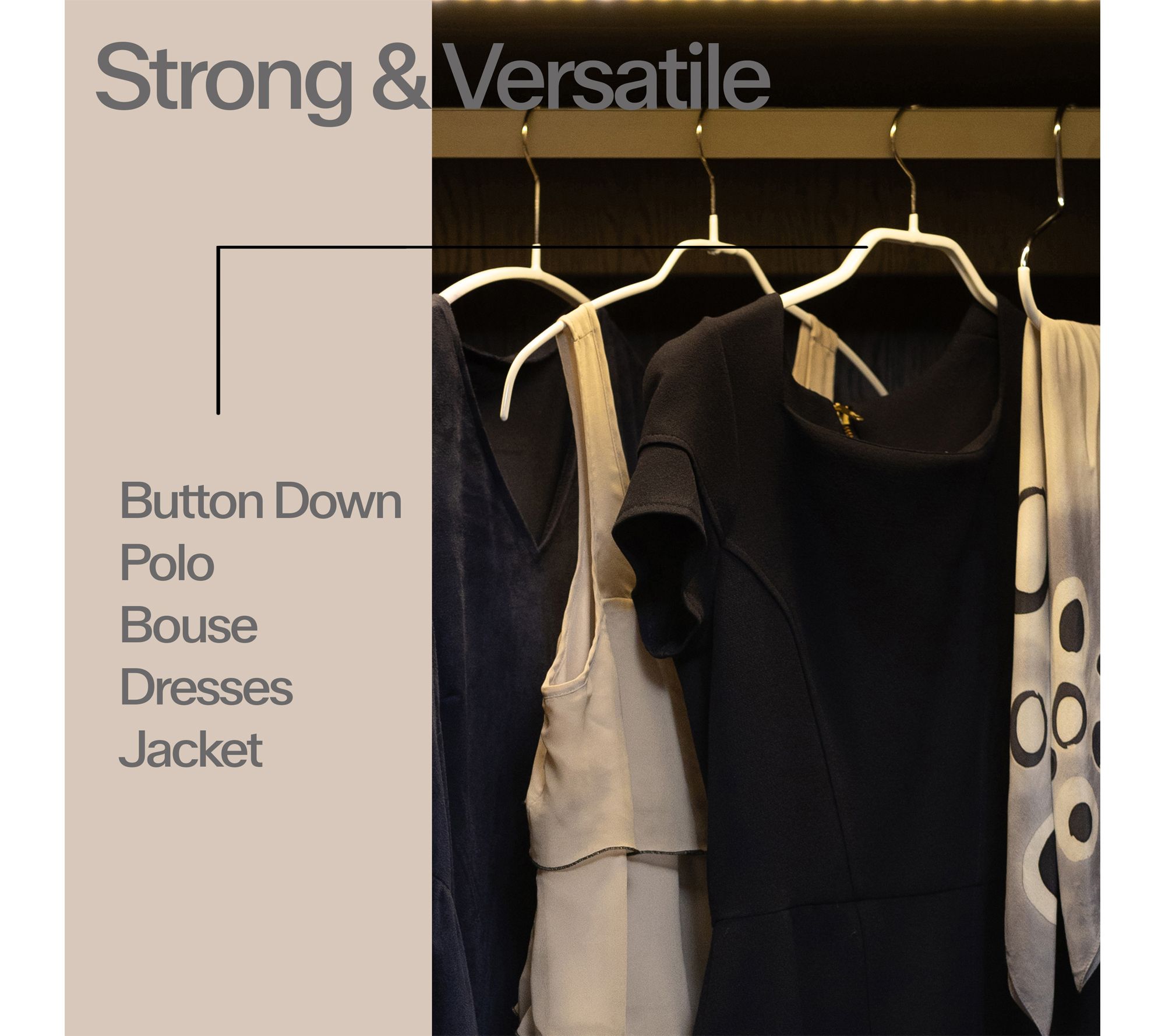 • For shirts, light coats, button-downs, blouses, and dresses