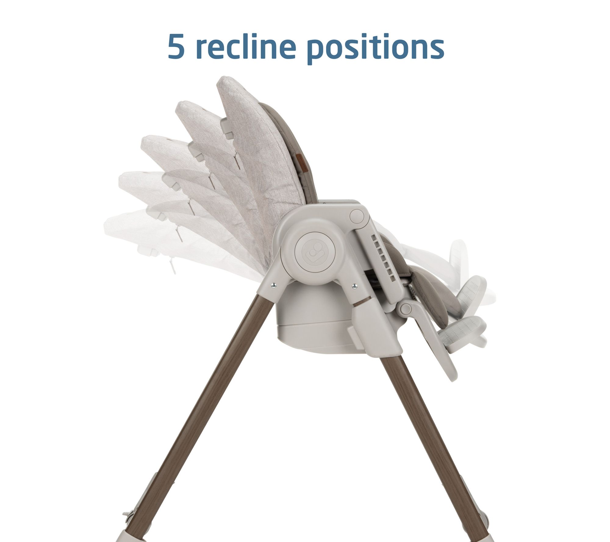 Mealtime becomes a breeze with this versatile high chair -- crafted to adapt through every stage, from delicate first tastes to big-kid snacks. Multiple tray, recline, and height settings ensure comfy positioning for growing children, while easy-clean features mean quick tidying after life's messiest moments. From Maxi-Cosi.