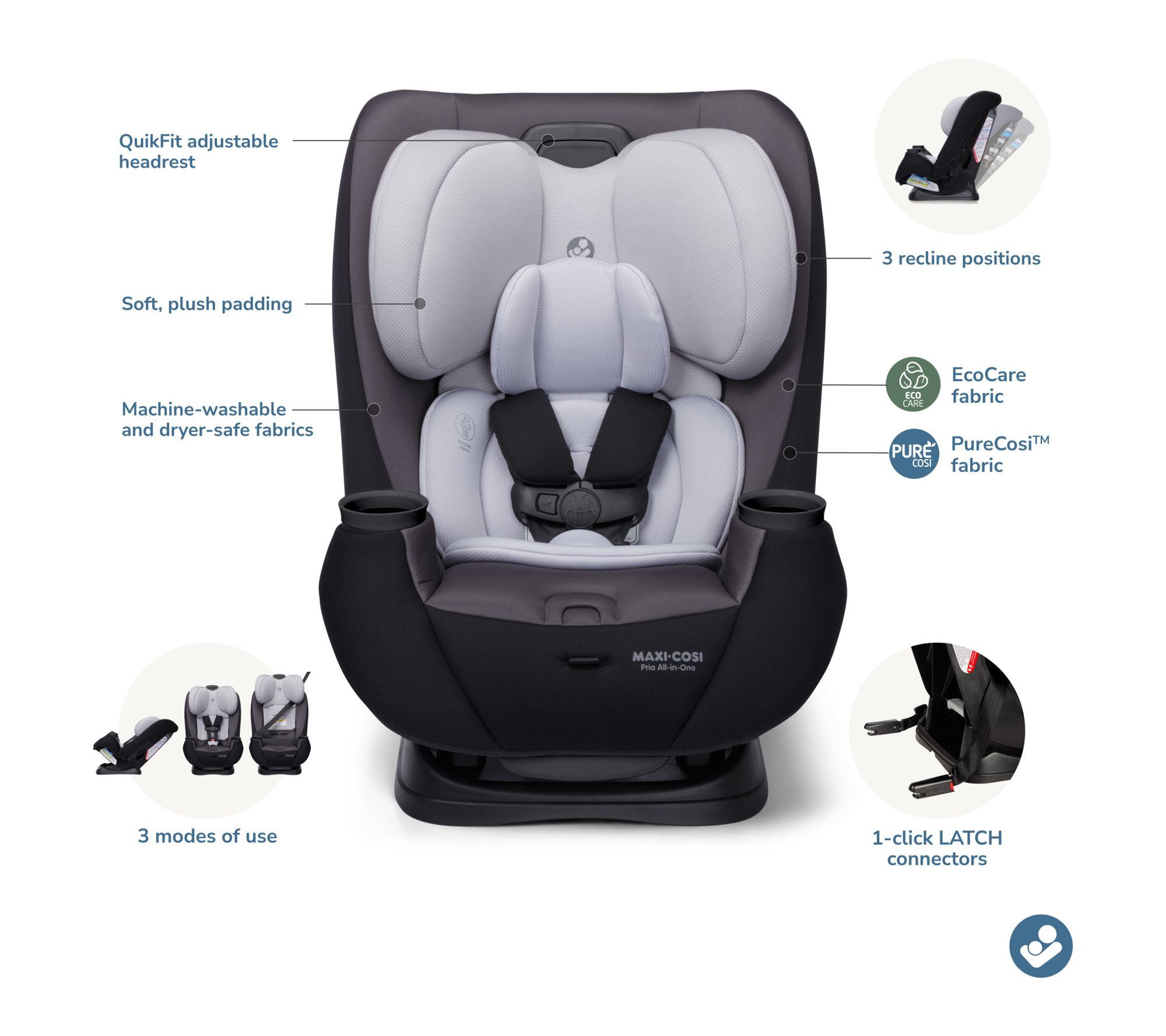 • Includes Maxi-Cosi Pria All-in-One Convertible Car Seat