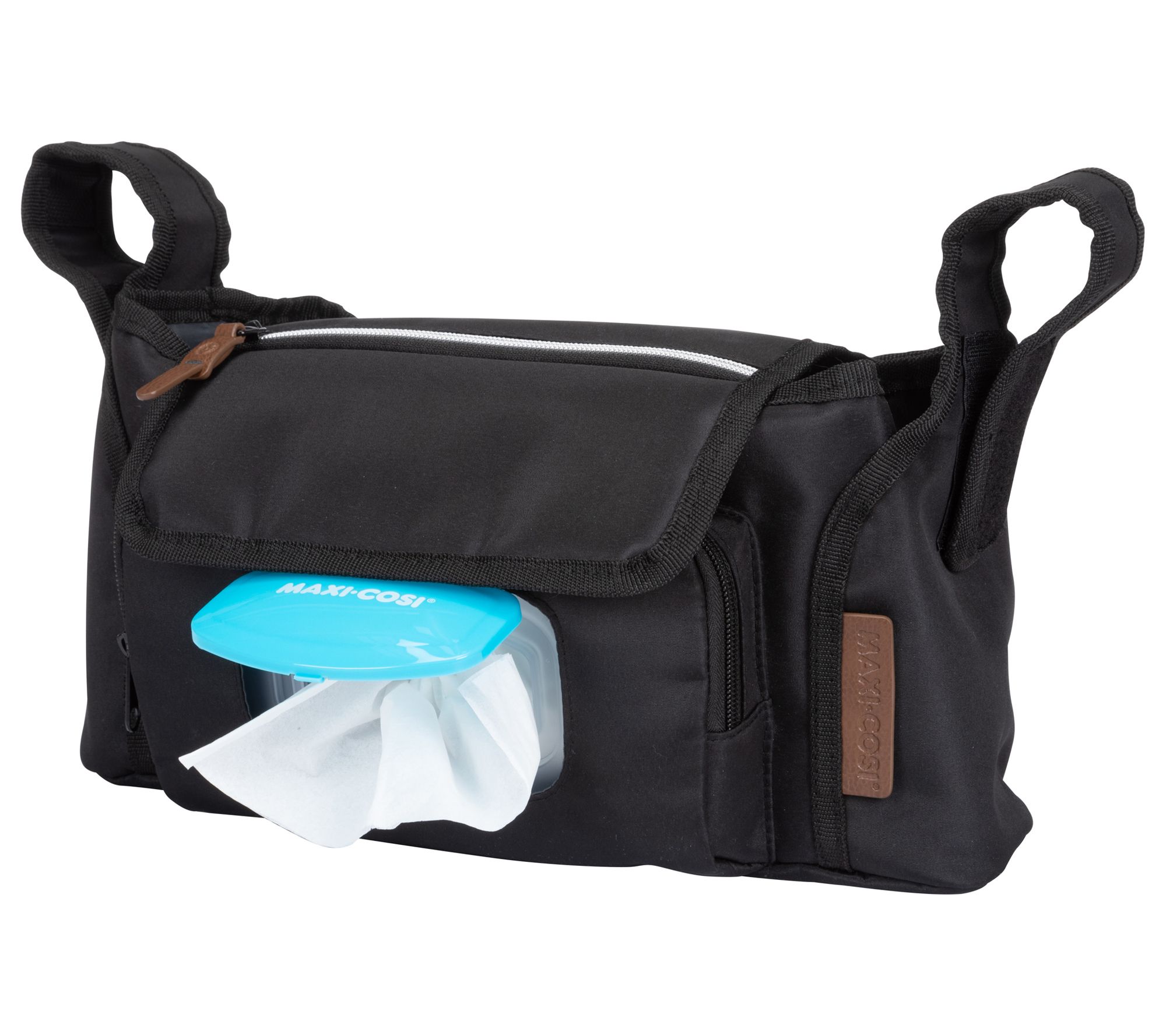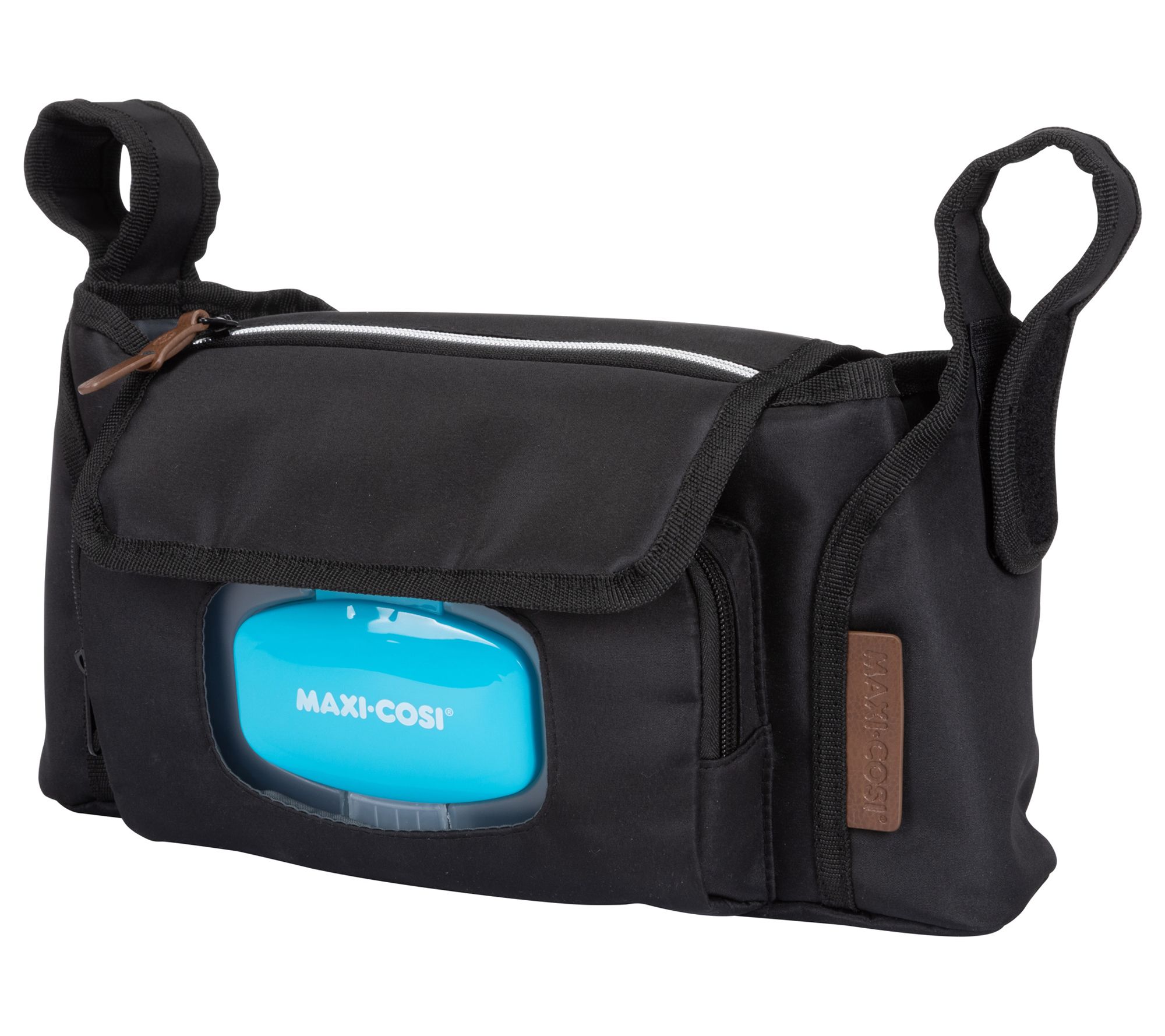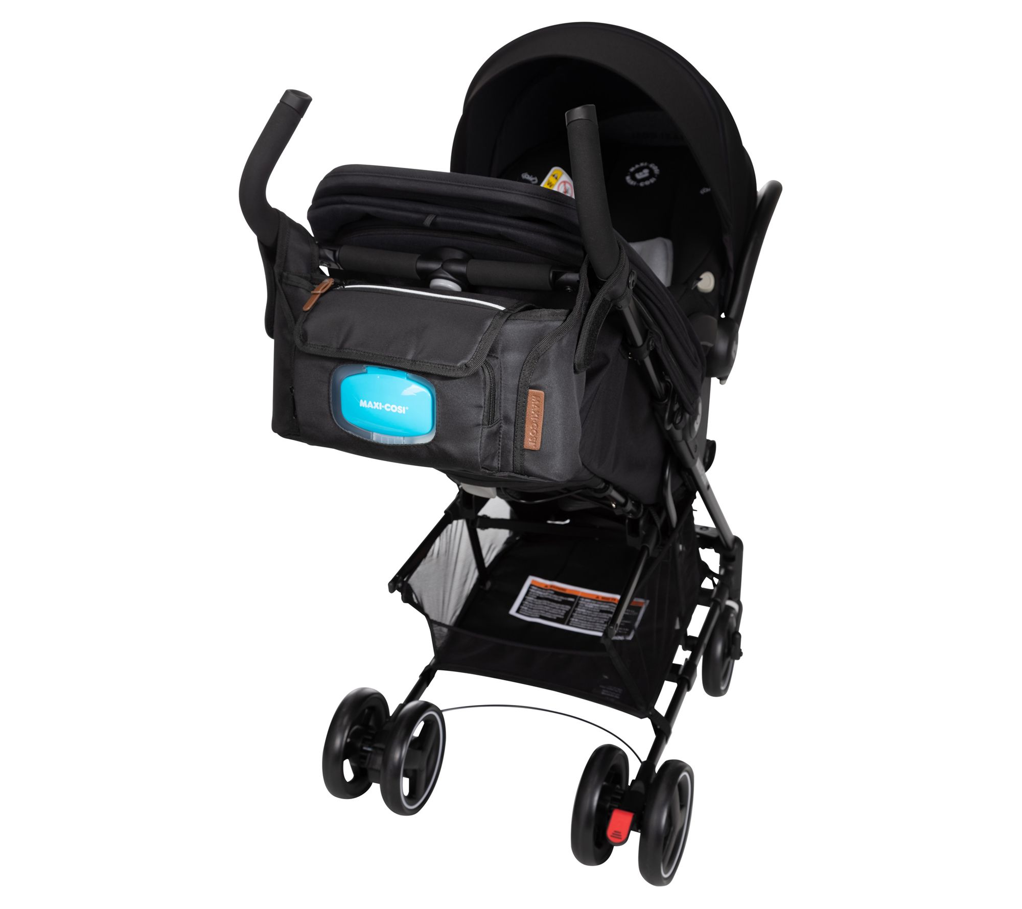 Stow and go, mama! This stroller attachment has a convenient wipe compartment and converts to a carry bag. From Maxi Cosi.