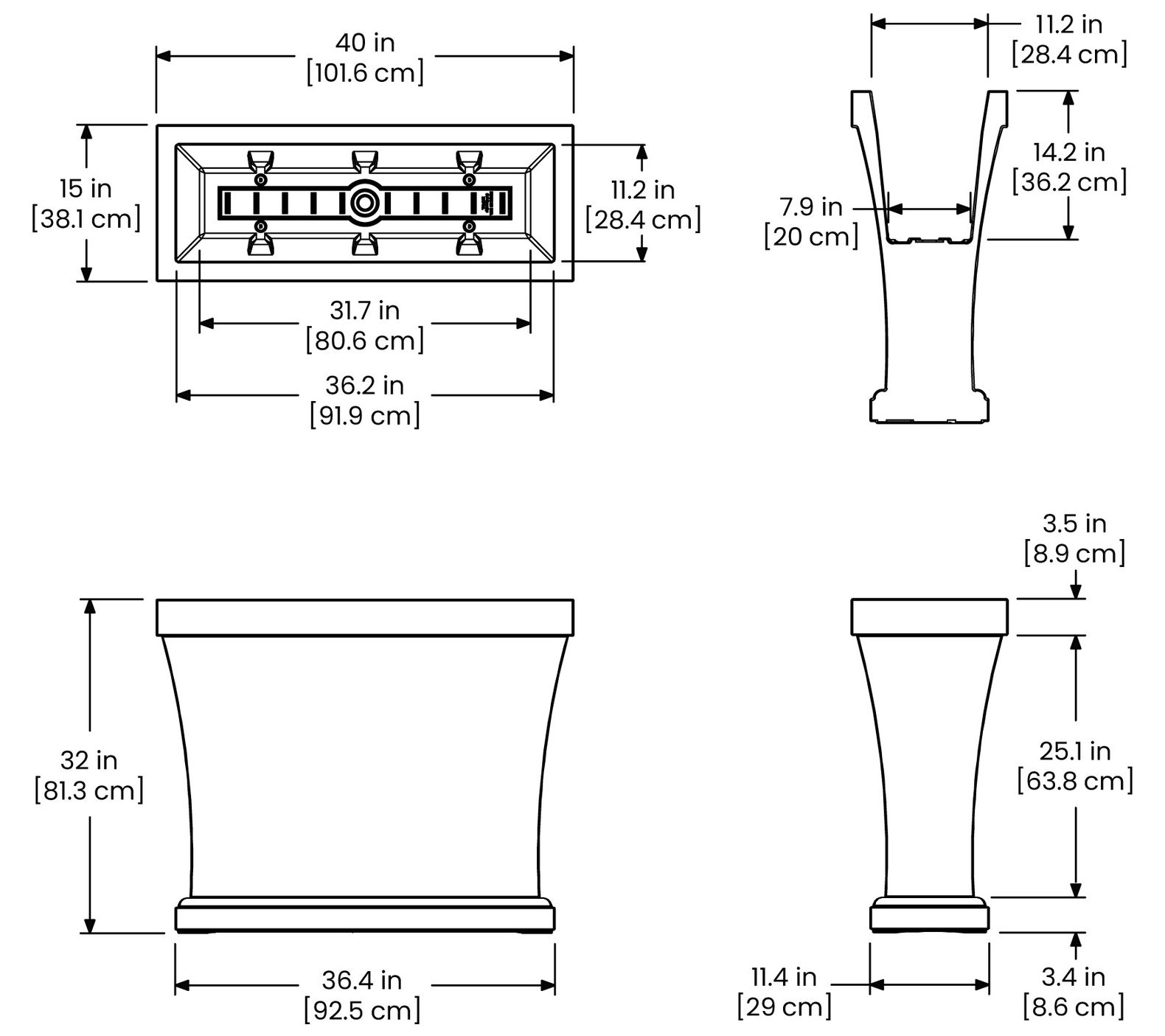 • Measures 40"L x 15"W x 32"H; weighs 35 lbs