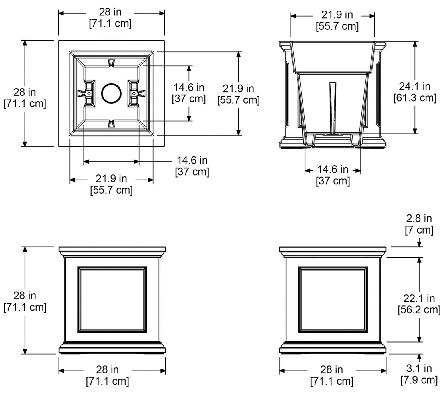 • Measures 28"L x 28"W x 28"H; weighs 45 lbs