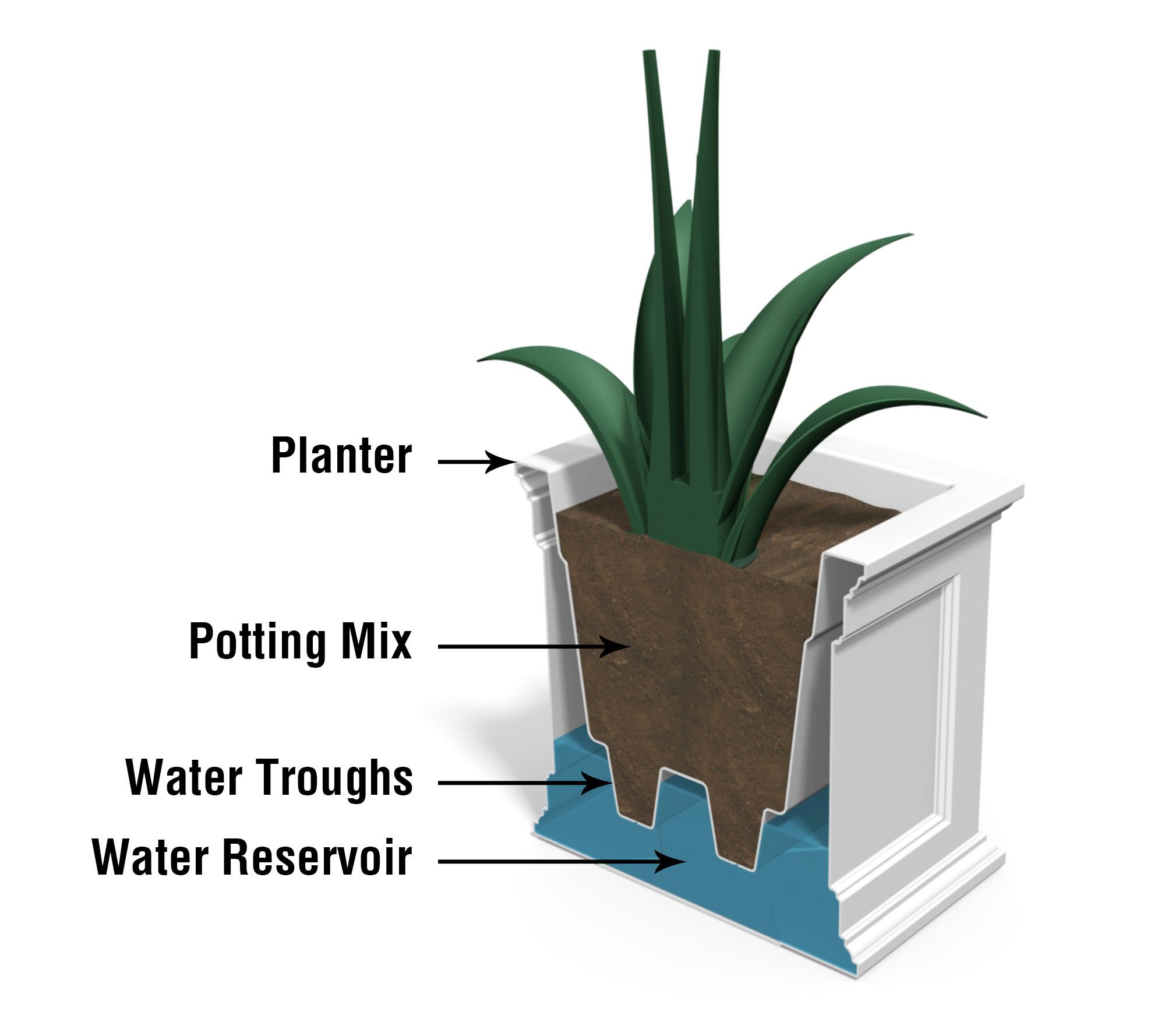 • 16-gallon soil capacity; 22-gallon water reservoir capacity