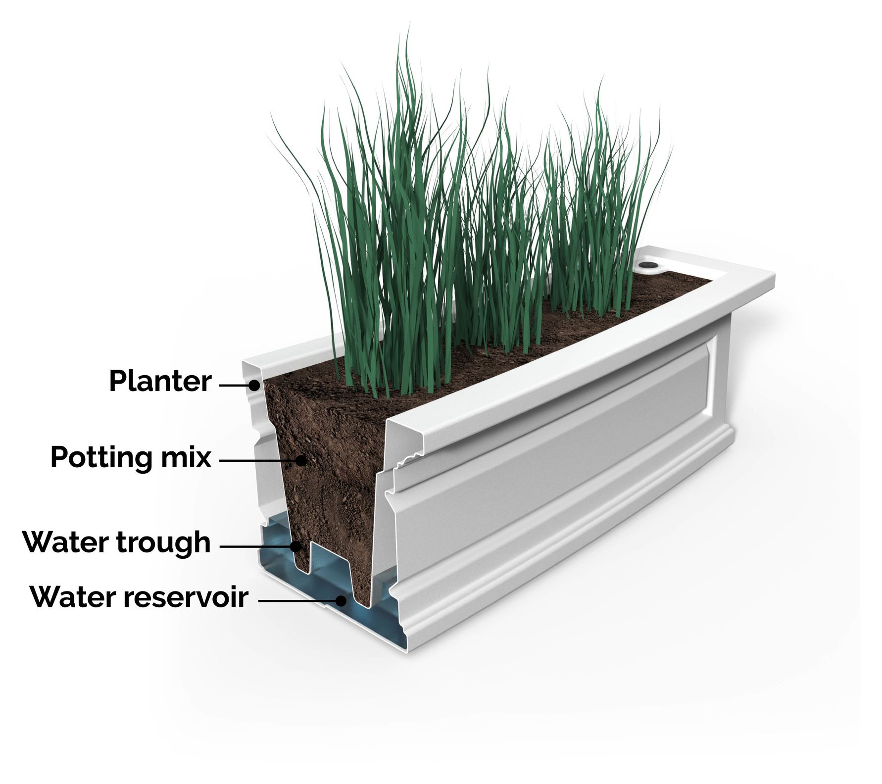Handsomely house your favorite blooms within this durable self-watering window box that instantly adds curb appeal to your home. From Mayne.