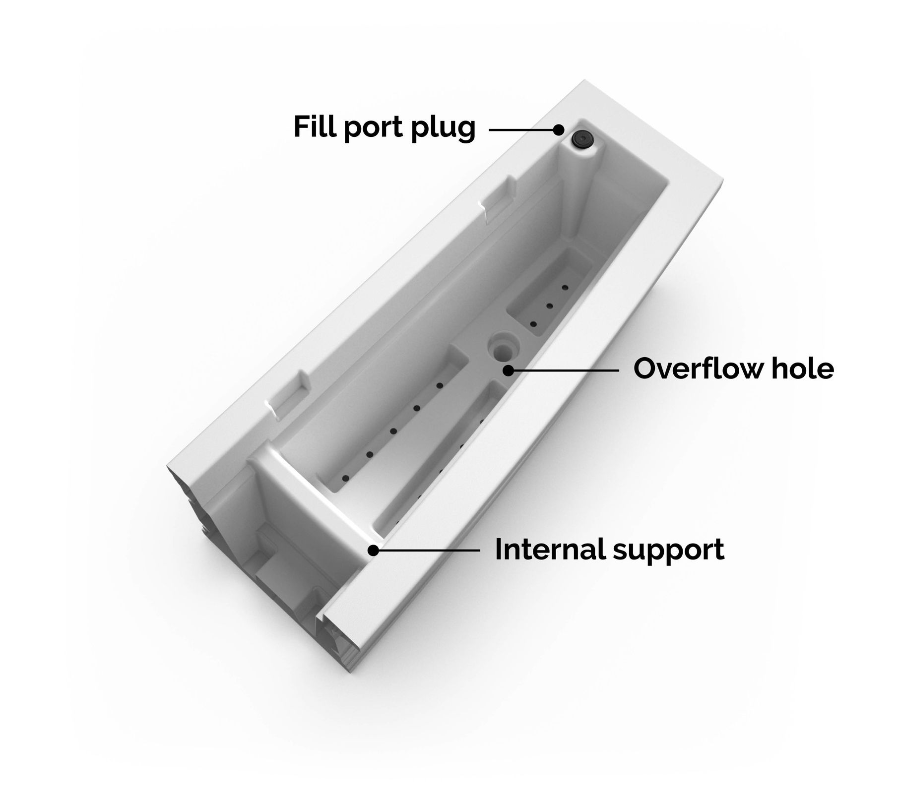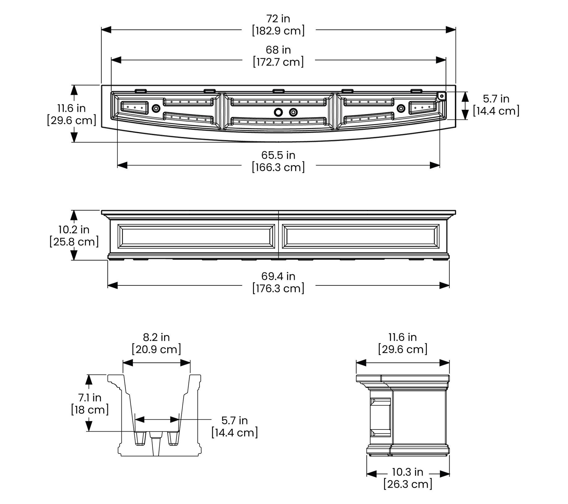 • Measures 72"L x 11.6"W x 10.2"H; holds up to 12.2 gal soil; Water reservoir holds up to 6.5 gal water