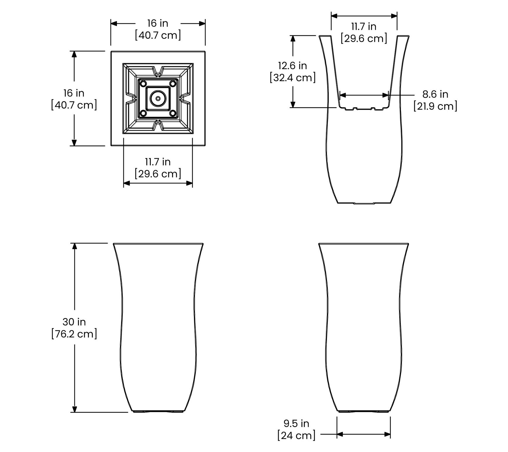 • Measurements: Exterior dimensions 16"L x 16"W x 30"H, weighs 10 lbs; Interior dimensions 11.6"L x 11.6"W x 12.75"D; Footprint 9.5" x 9.5"