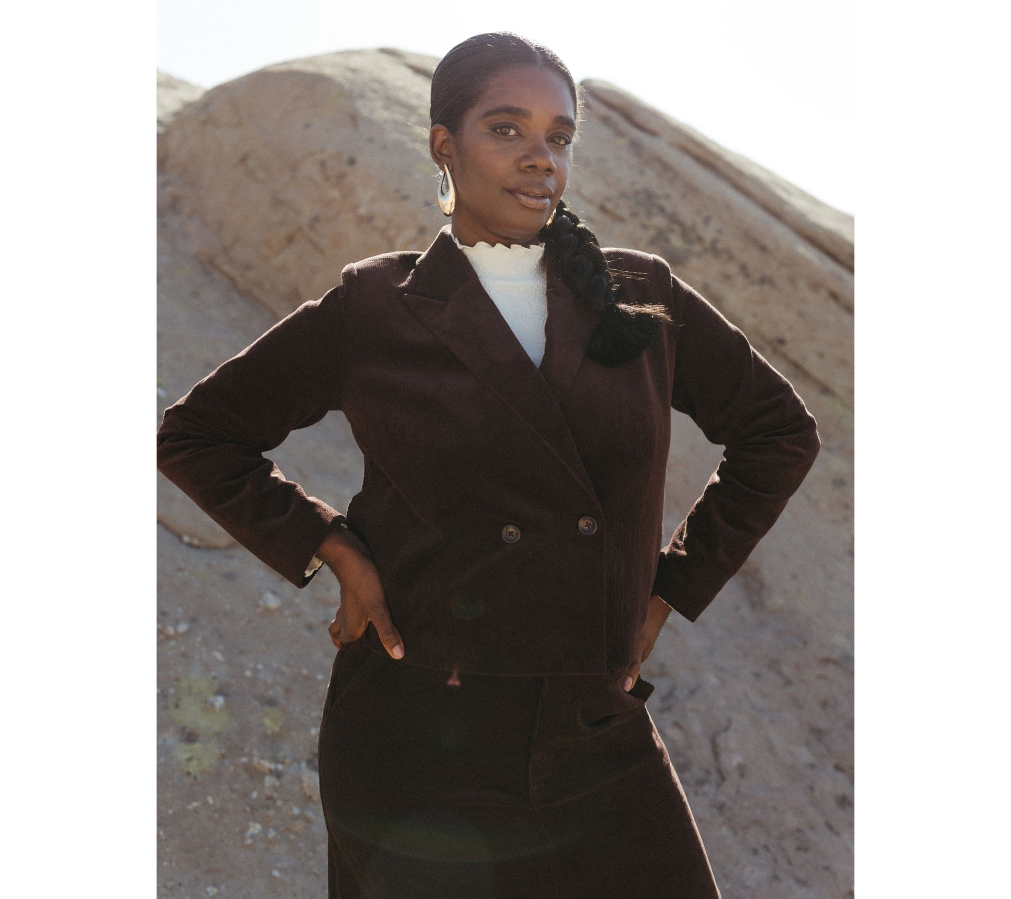 A Jennie Garth cropped blazer = crushing those fall/winter 'fit goals! Crafted in a fine whale corduroy that's never stiff or crunchy, and softly suited for a little extra structure (thanks to light shoulder padding), this double-breasted design elevates your OOTD, taking you from office hours to happy hour without ever grabbing a quick change. Pair it with your chicest jeans, denim skirts, or wide-leg trousers... and slay! From Me by Jennie Garth.