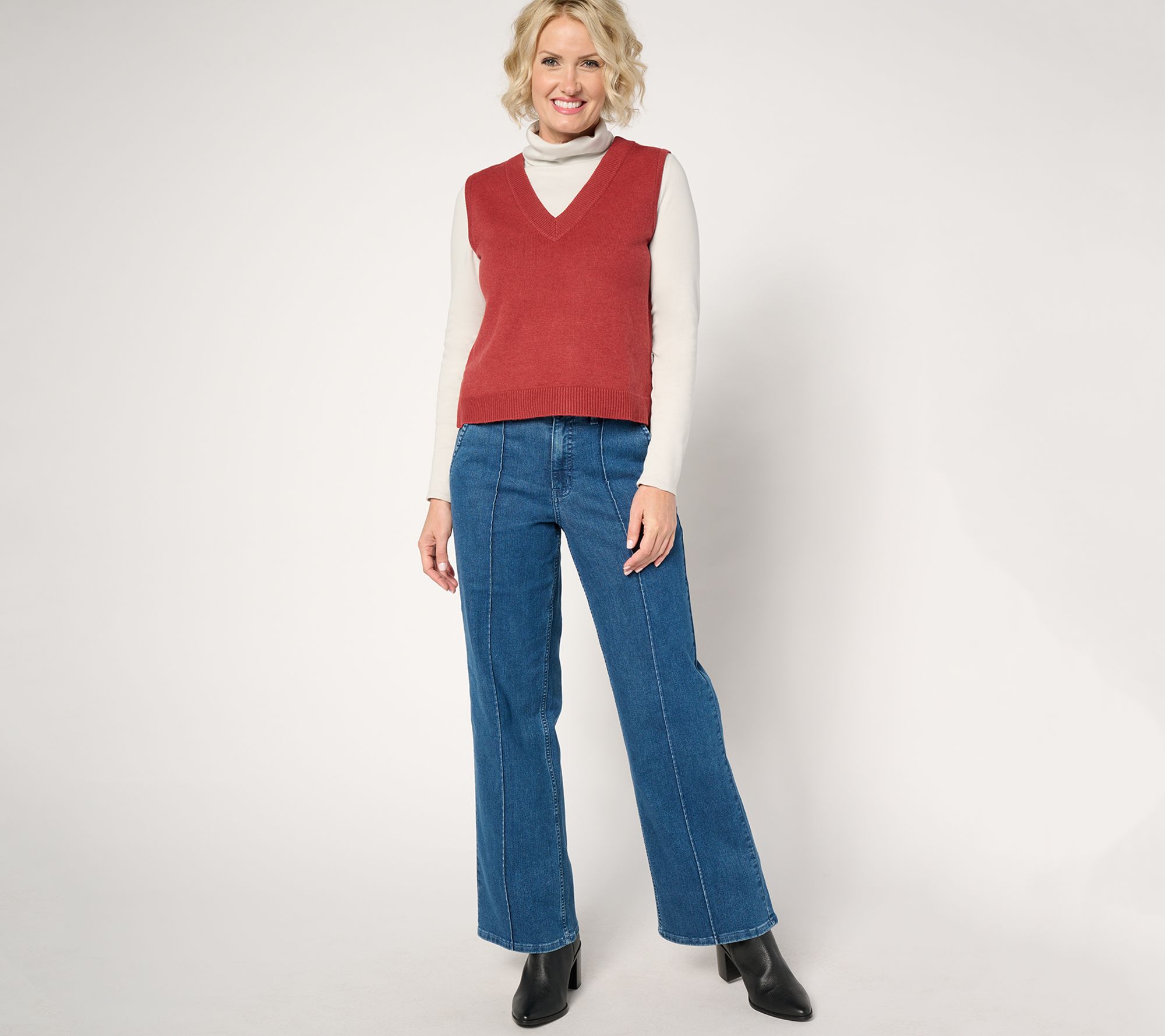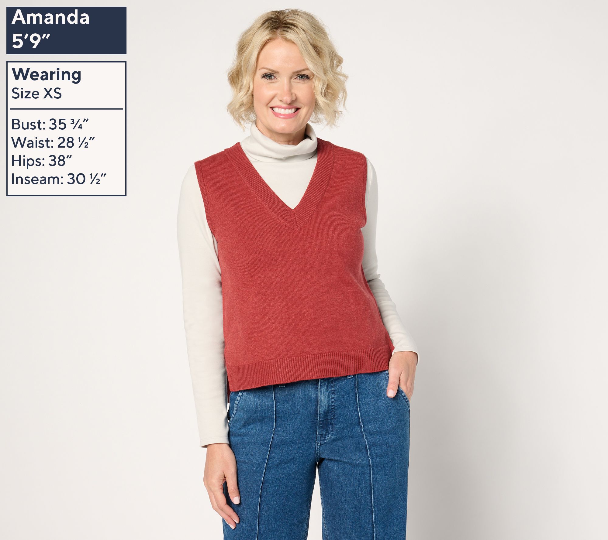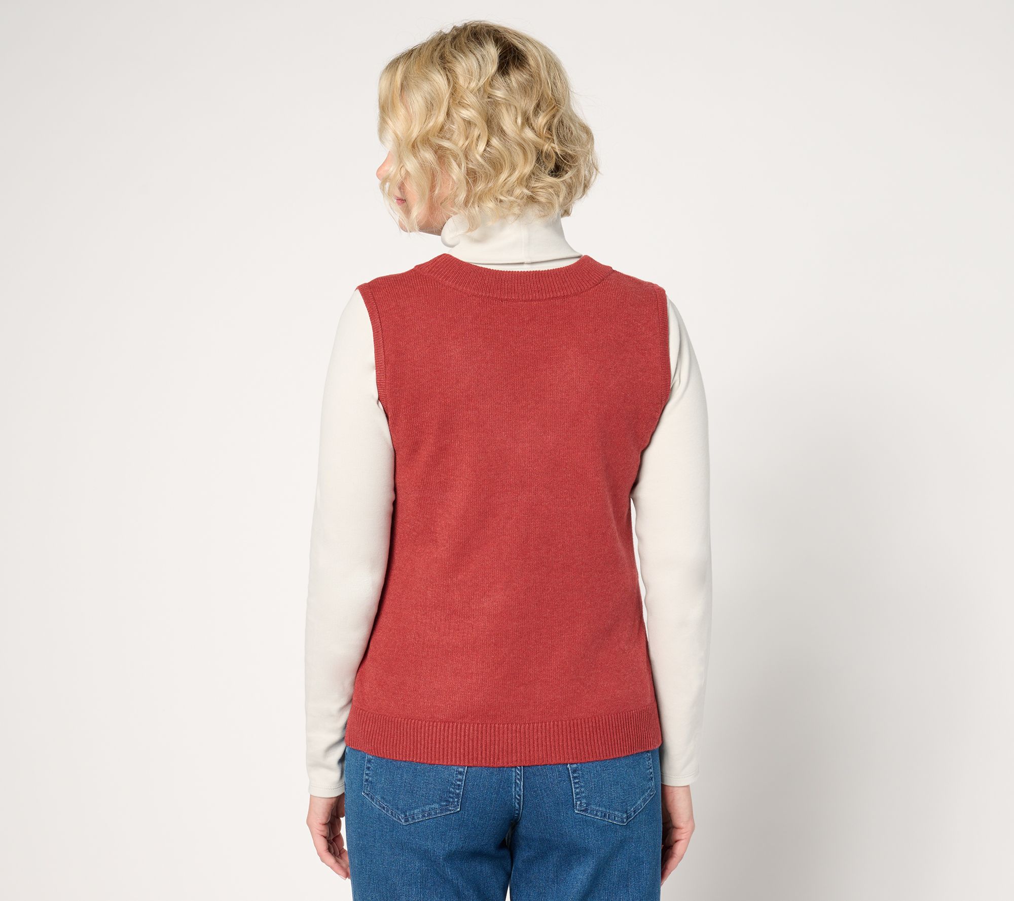 Prep school cool. The Fenway sweater vest scores big with polished officewear and weekend denim looks thanks to its classic cut, V-neckline, and easy-to-layer attitude. From Me by Jennie Garth.