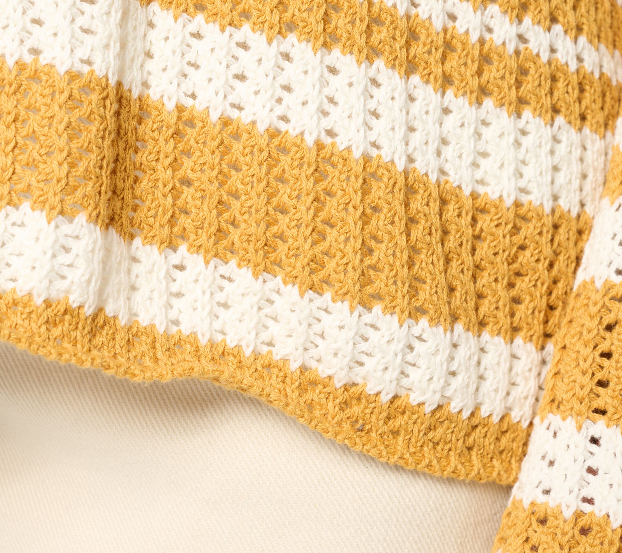 Features: striped, pullover style, open V-neck shape, dropped shoulders, wide bell sleeves