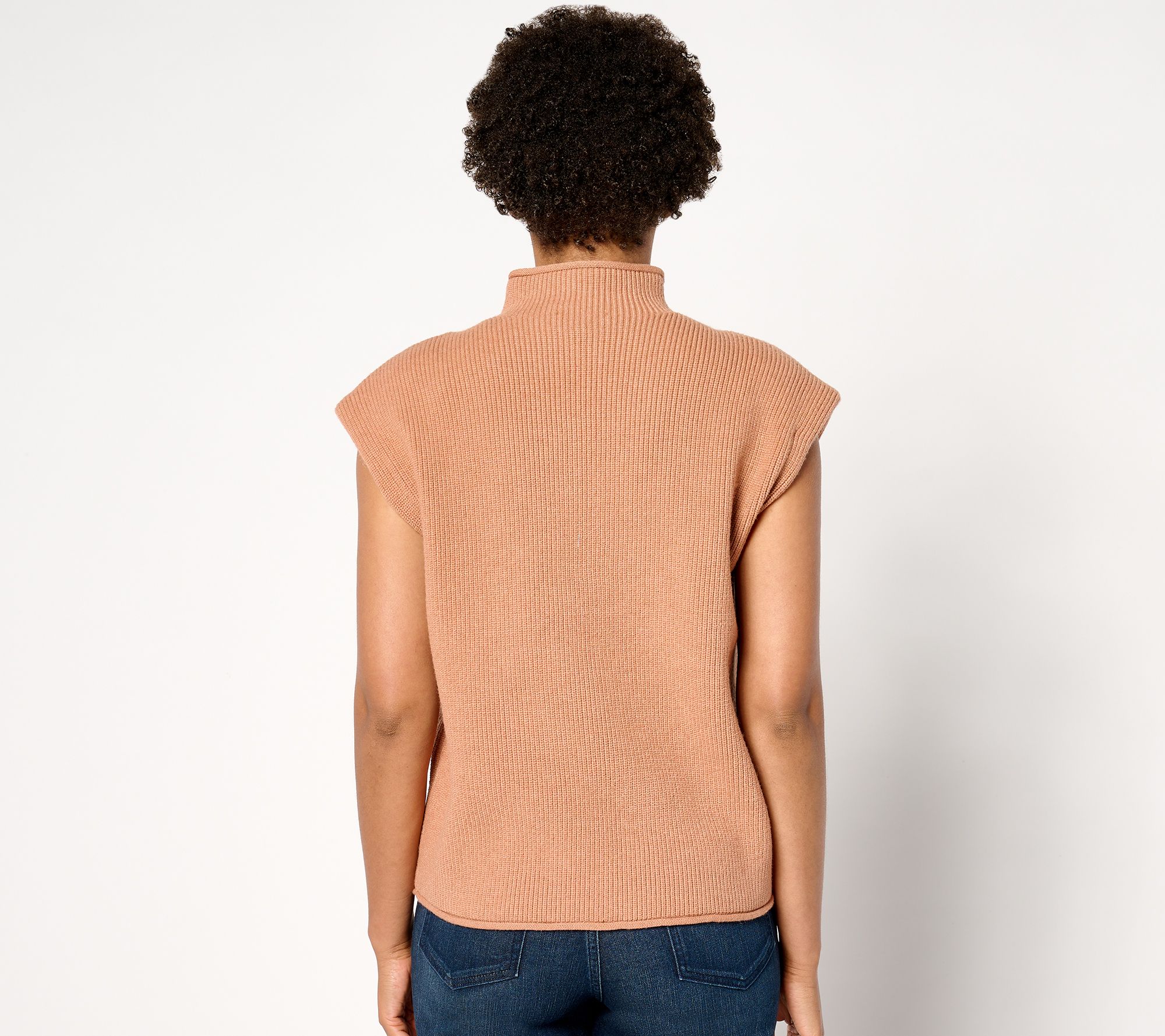 Sweater weather: sleeveless edition! This softly ribbed sweater vest is just our jam when seasonal temps are less than crisp or when we're moving around a lot -- prepping a meal for family and friends, running kids or pets to and fro, or getting in some sunny midday steps. Medium-thick shoulder pads provide structure and balance the overall look. From Me by Jennie Garth.