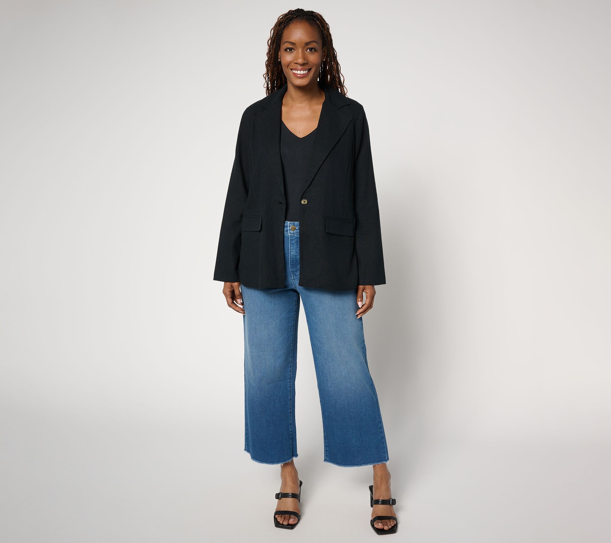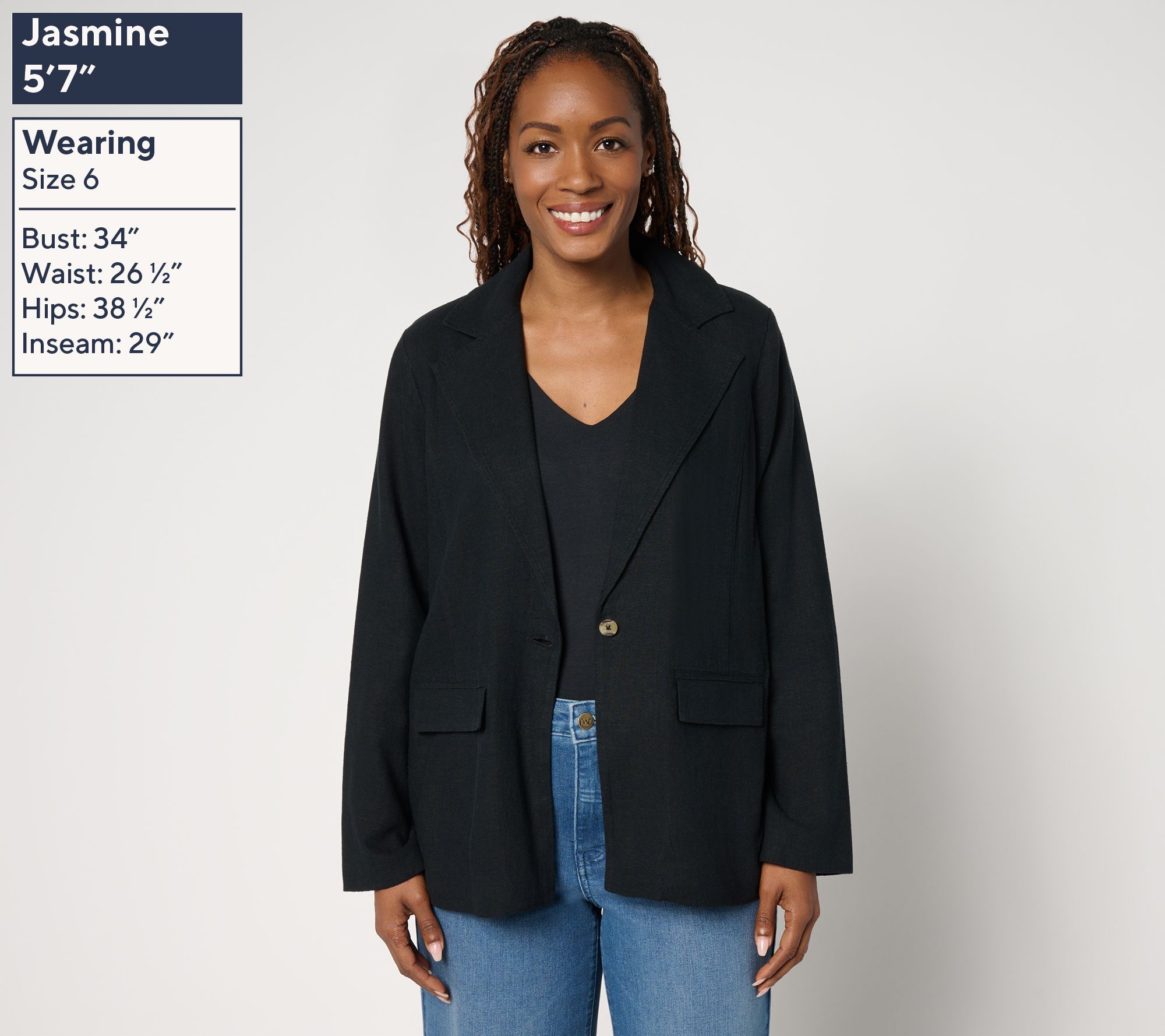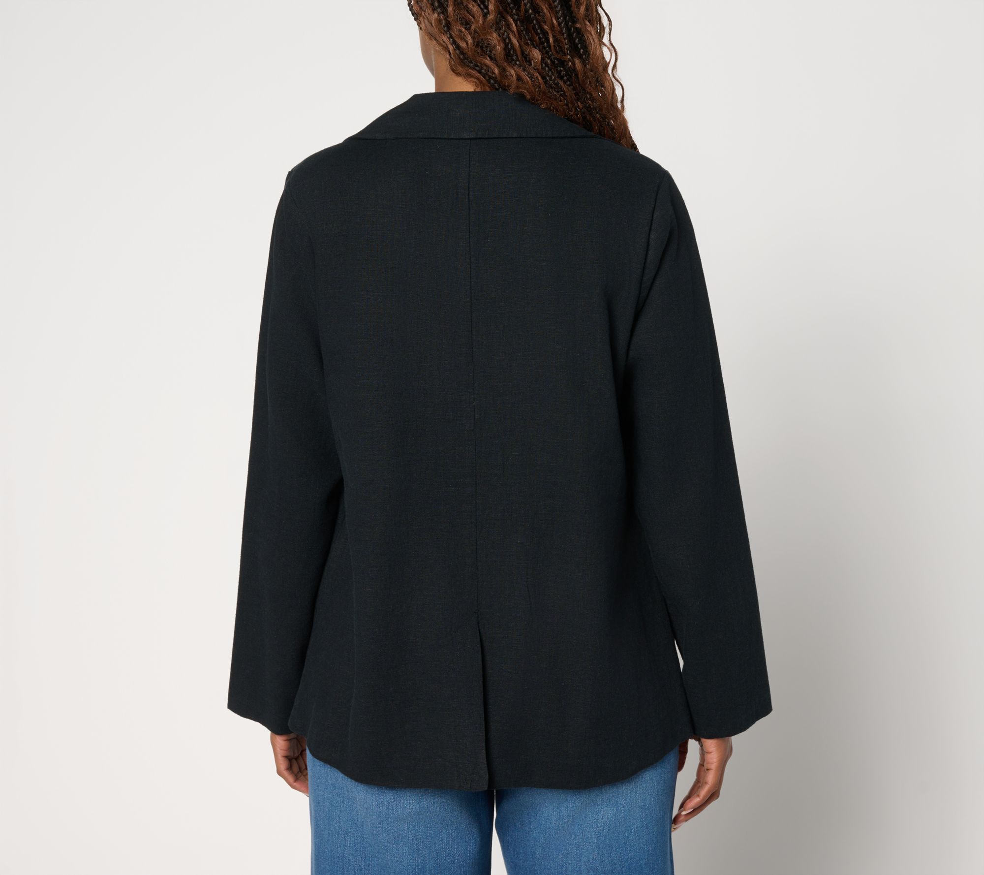 Going out? Keep the vibe as cool as a canyon breeze in Jennie's Mullholland blazer, crafted with a linen-blend shell and practical cotton lining. From Me by Jennie Garth.