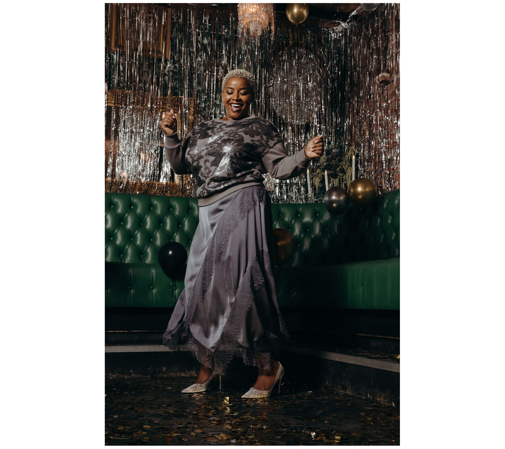 • Hardware: side invisible-style zipper, hook-and-eye closure