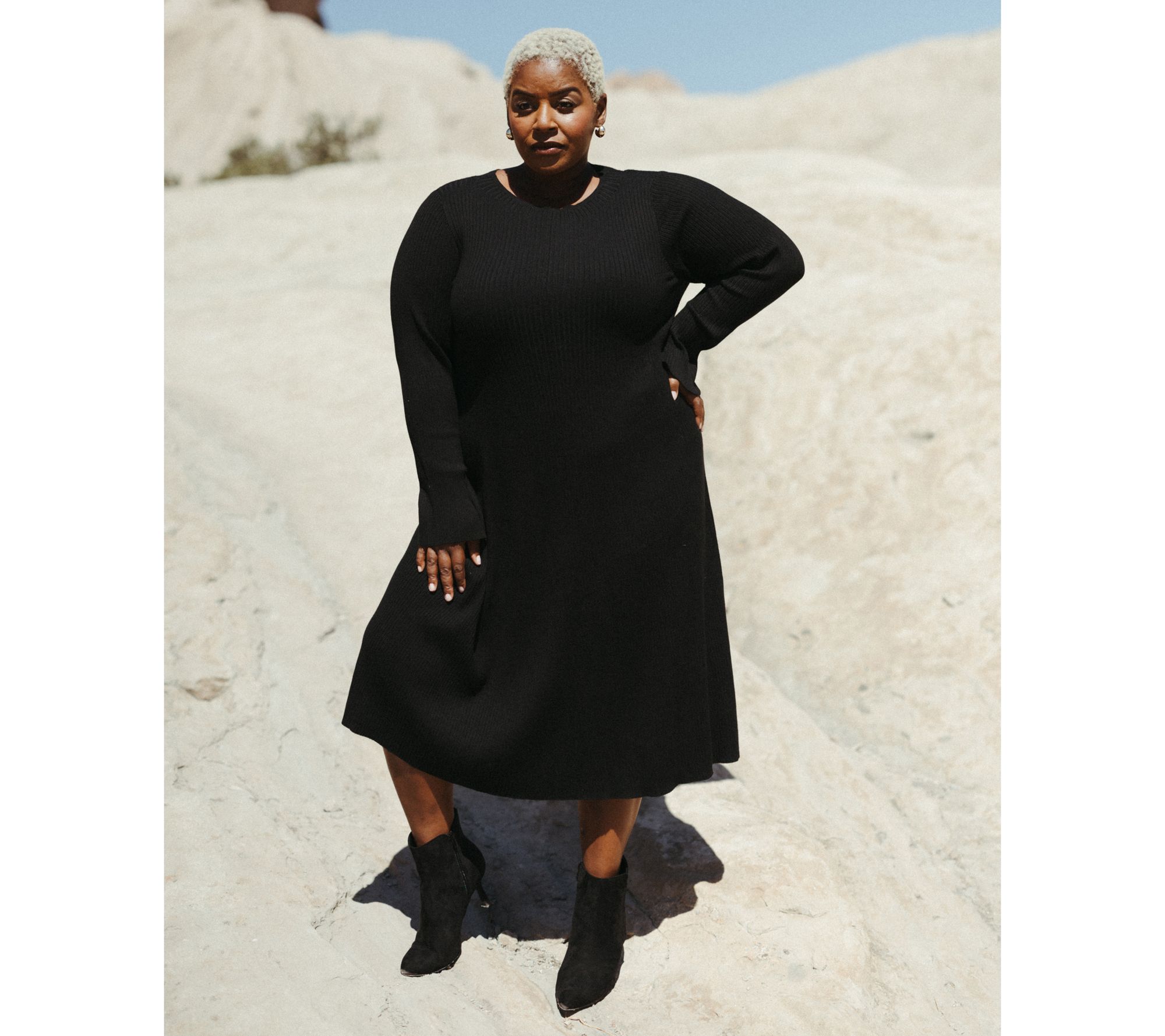 Constructed in a flattering and versatile midi length, this work-to-weekend sweater dress is the perfect backdrop for all your favorite accessories and jewelry. From Me by Jennie Garth