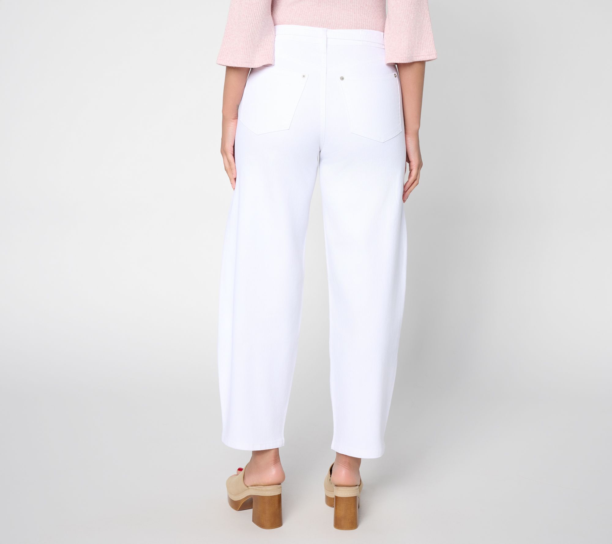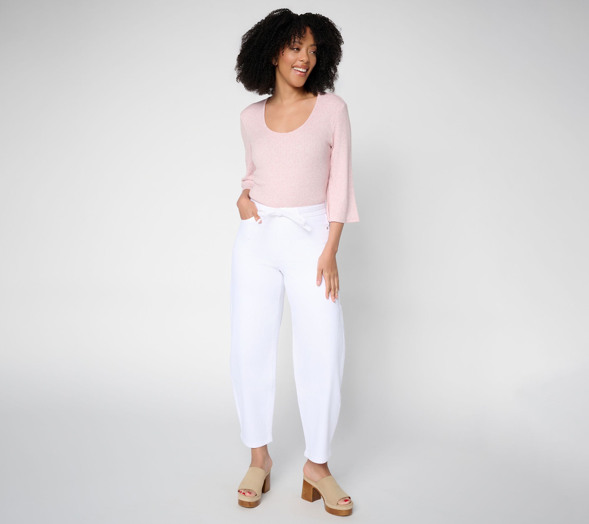 From casual coffee meetups to evenings out, these denim barrel-leg pants offer a fun twist on classic style with playful self-tie detail at the waist. Signature five-pocket styling and a relaxed, slightly ballooned silhouette keep things fresh and casual. From Me by Jennie Garth.
