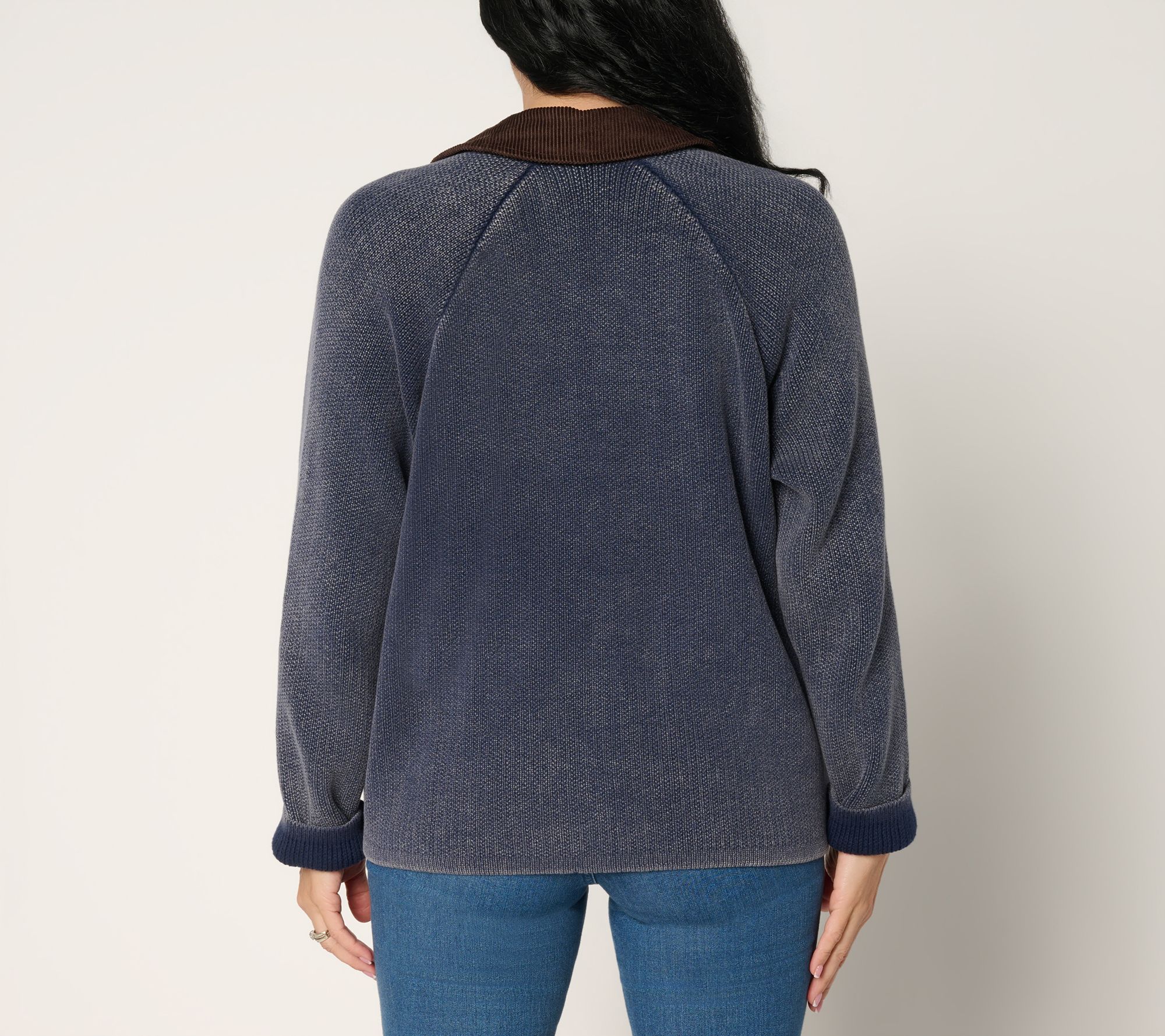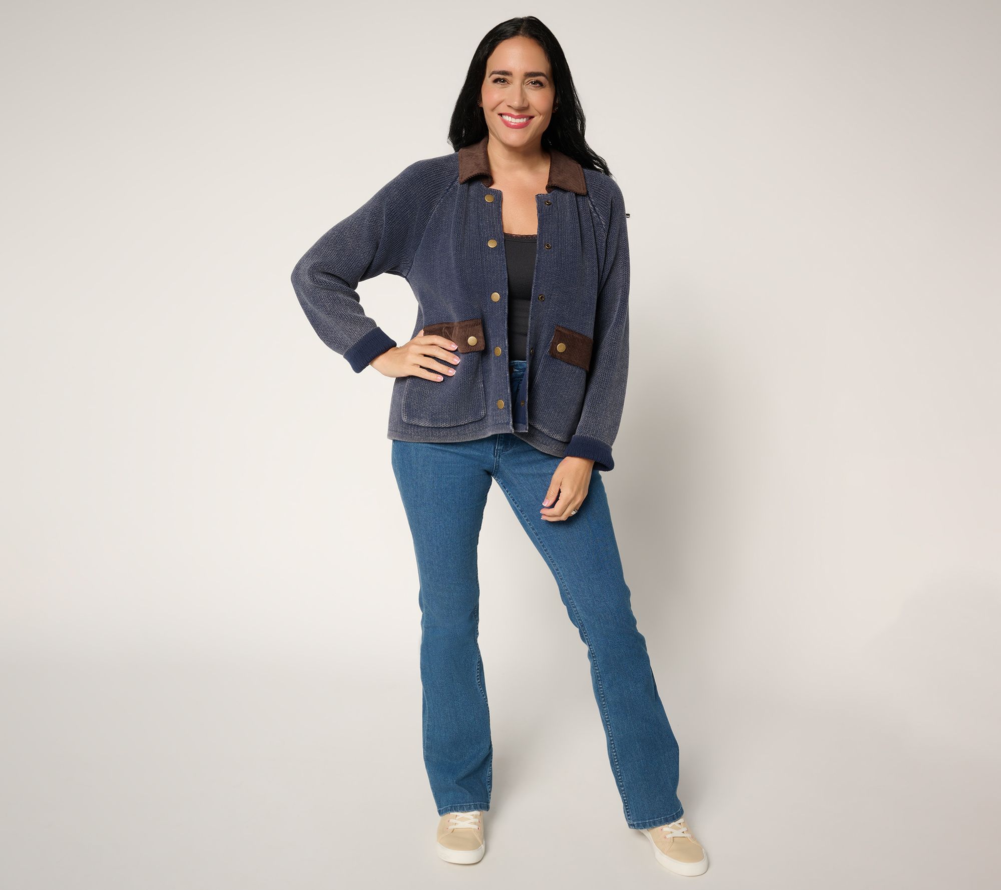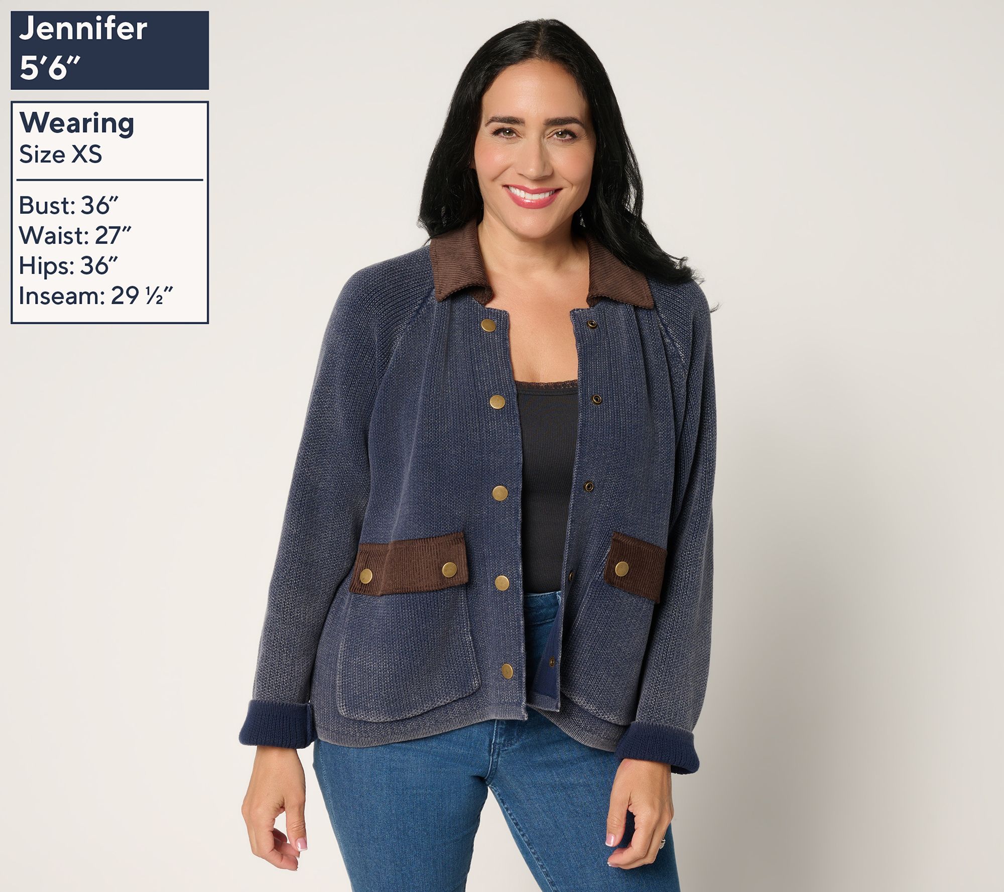 This cotton sweater jacket was made for days that call for comfort and easy polish. The corded collar adds trend-right texture, while details like snap closures and patch pockets make it an ideal throw-on piece for everything from morning coffee runs to cozying up indoors. From Me by Jennie Garth.