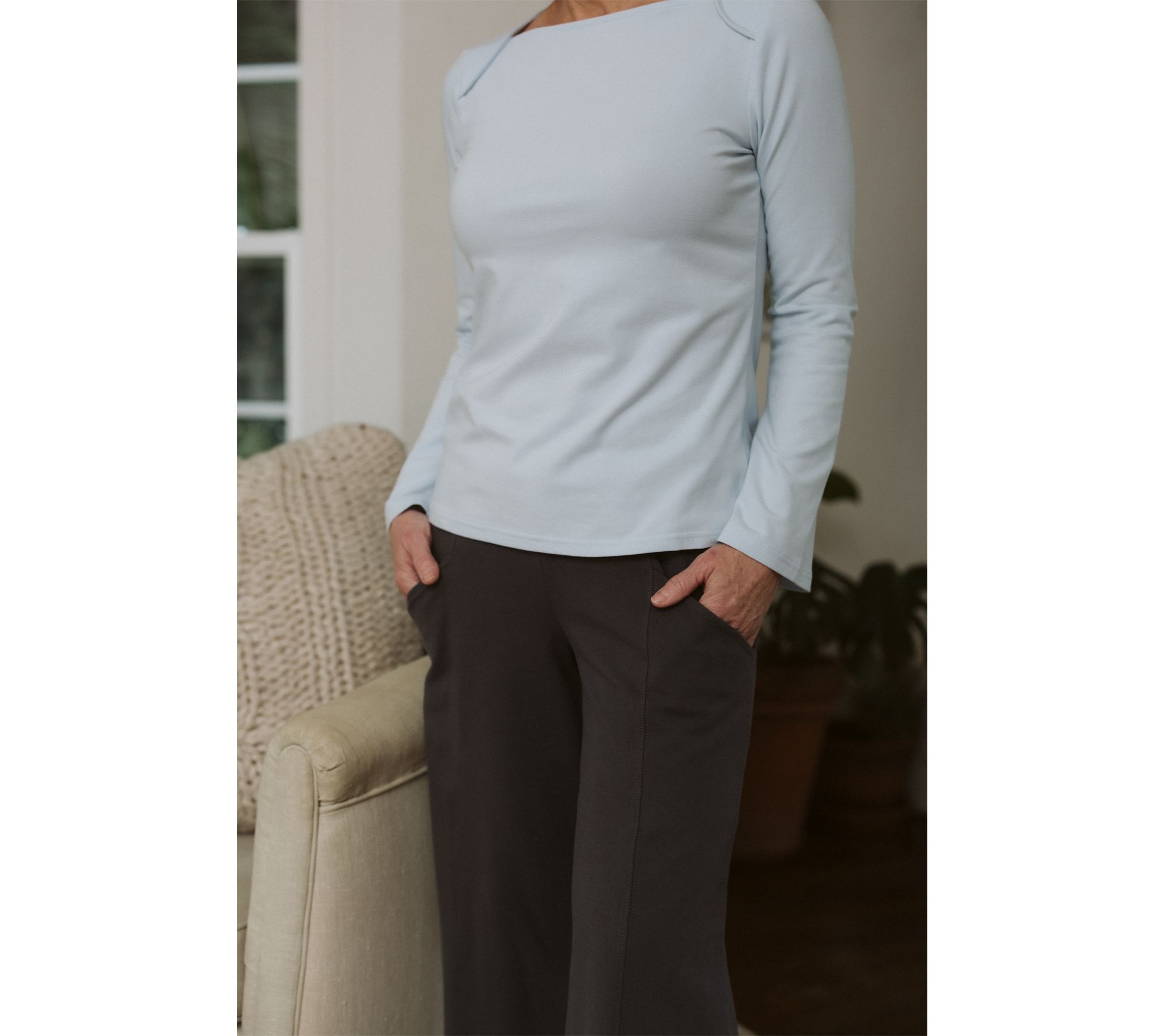 Headed to the sandy coast or workday cubicle? Easygoing yet comfortably chic, these knit cropped pants are designed for everything from beachside strolls to in-office stays. The relaxed wide-leg silhouette keeps you comfy, while deep pockets hold your essentials as you move through your day. You decide where you're headed. From Me by Jennie Garth.