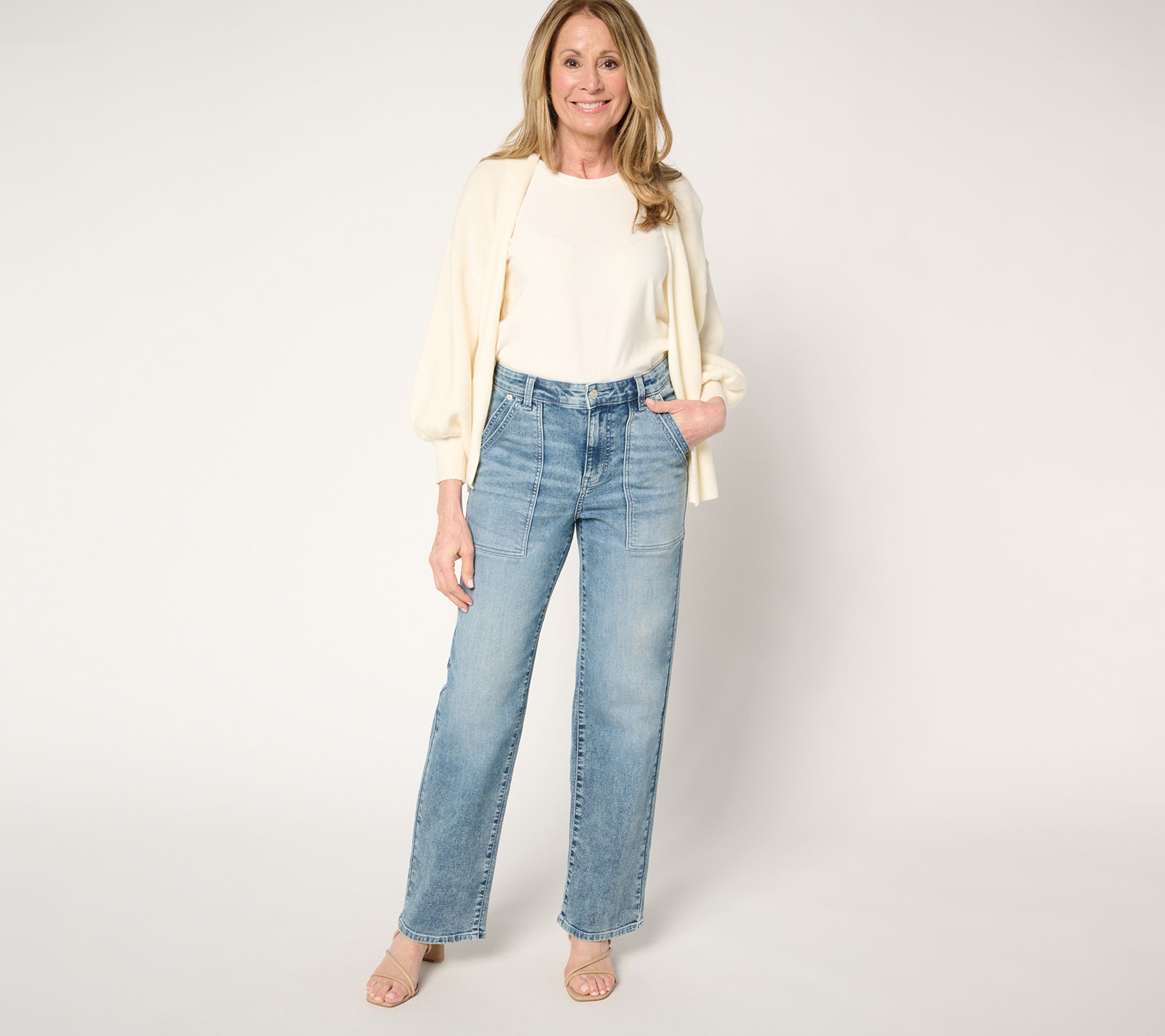 A busy mom, actor, and entrepreneur like Jennie Garth knows fashion and function have to co-exist in almost every closet piece. Born of necessity, these crisp straight-leg jeans hit the mark, creatively combining functionality with a fab sense of trend-right fashion. Double utility pockets offer ample on-board storage along with a fresh take on a daily essential. Dressed up or down, this denim is ready for anything on your agenda. From Me by Jennie Garth.