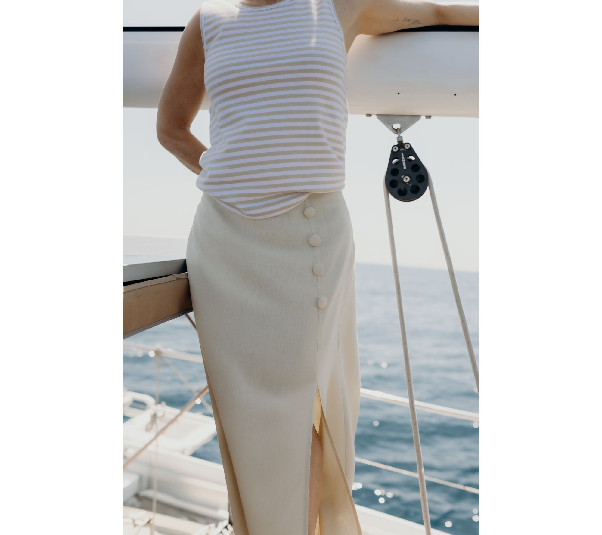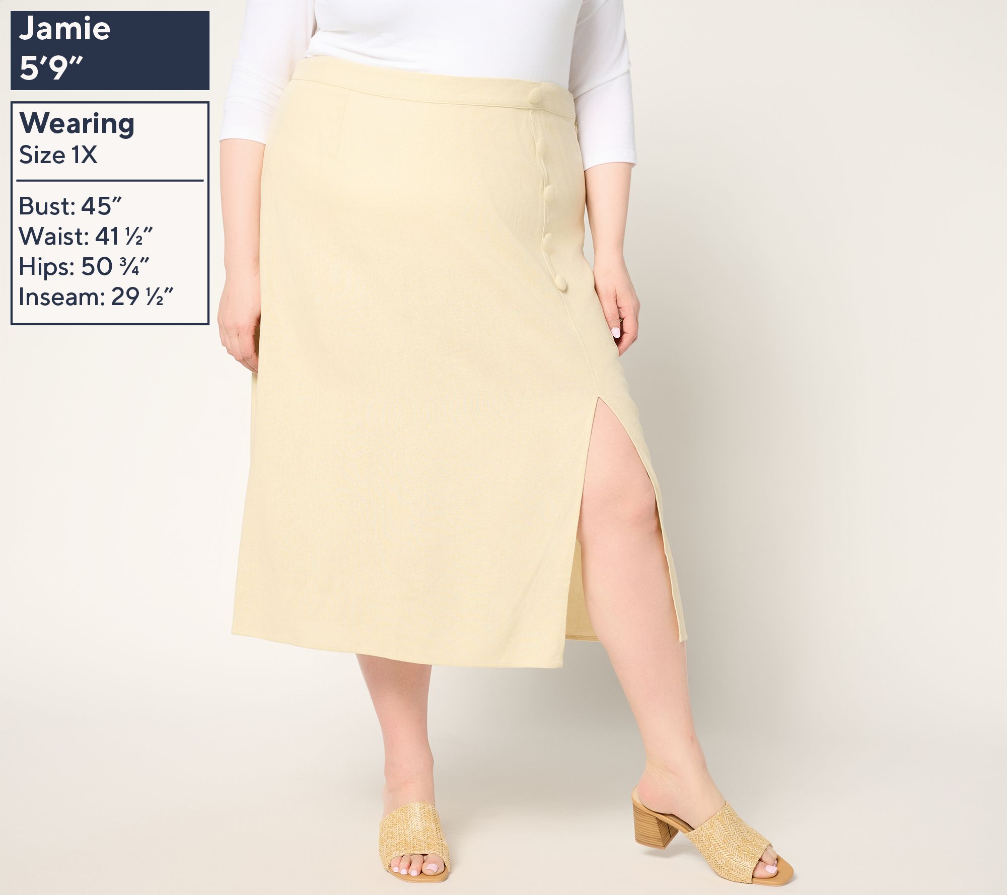 A little retro and a lot easy-breezy, the East End linen-blend midi skirt invites laid-back sophistication to almost any fashion sitch. Play up the charm for a meeting or event by pairing it with a silky blouse and pointy-toe flats, or simply add a tank and bangles for sunny-day sweetness. From Me by Jennie Garth.