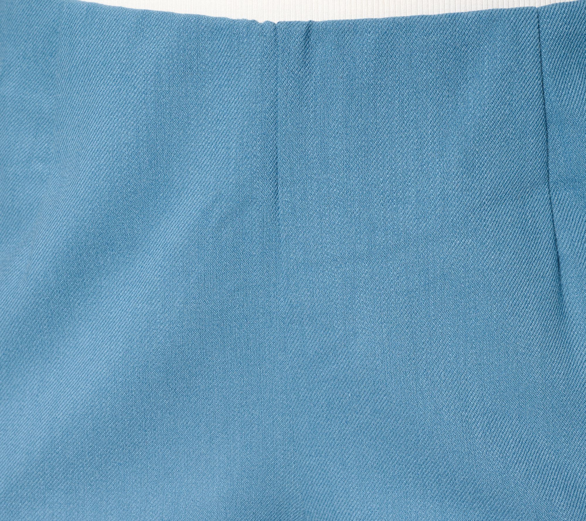 We have lift off! Launch your work-ready looks with these Me by Jennie Garth twill pants. A trouser style with clean lines and a no-fuss fit, the Hollywood waistband and soft stretch keep things smooth around the waist, while the wide-leg silhouette make styling so easy for both polished casual and more profesh looks. Front and back waist darts lend a tailored touch, while side seam pockets add just the right amount of function. From Me by Jennie Garth.