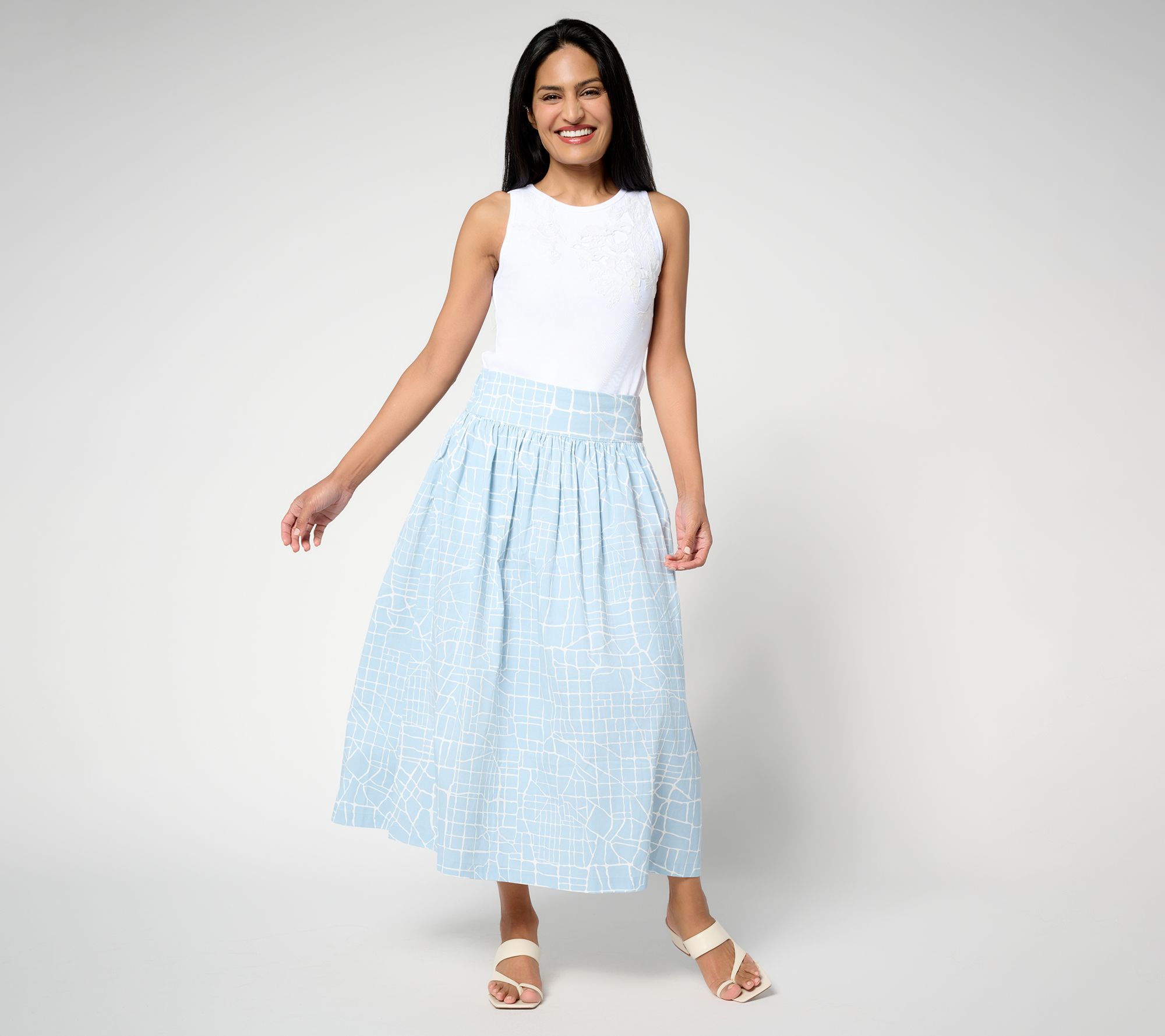 Where are you headed? Look in the direction of this chic midi skirt to map out your next 'fit. City explorations await with this pretty pull-on featuring a wide elastic waistband and a traffic-stopping print that adds urban charm to any look. (Blending in with the crowd just isn't an option.) From Me by Jennie Garth.