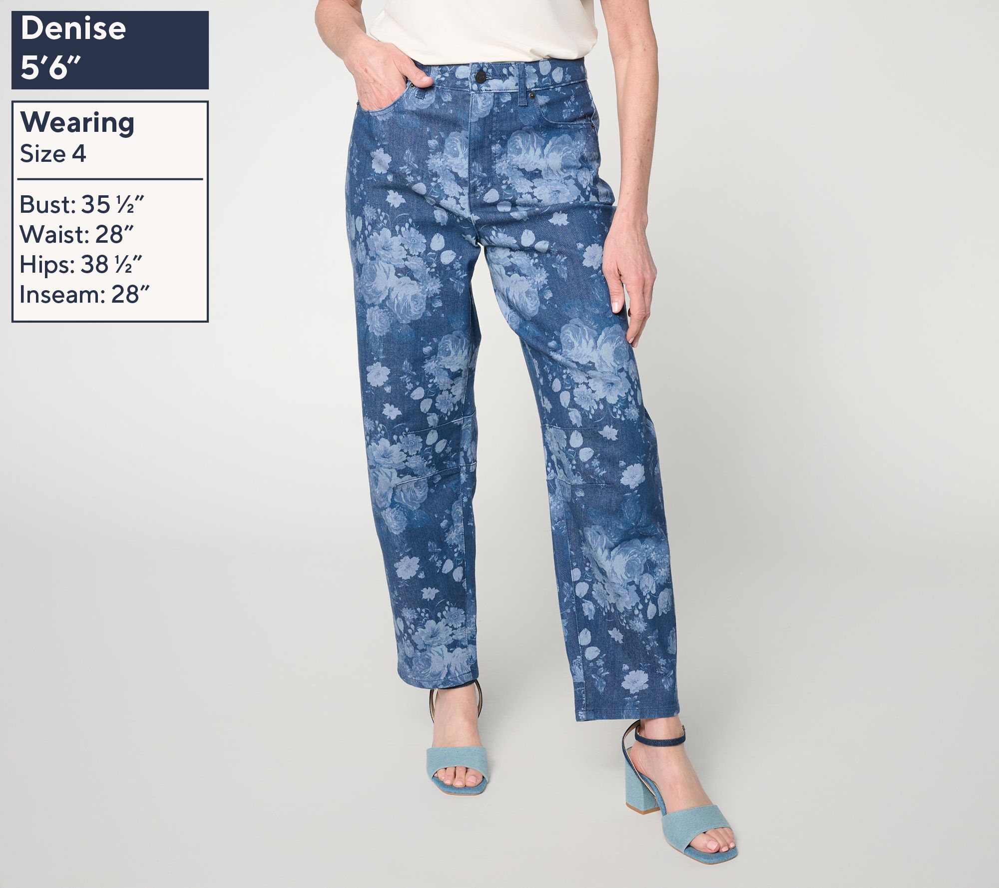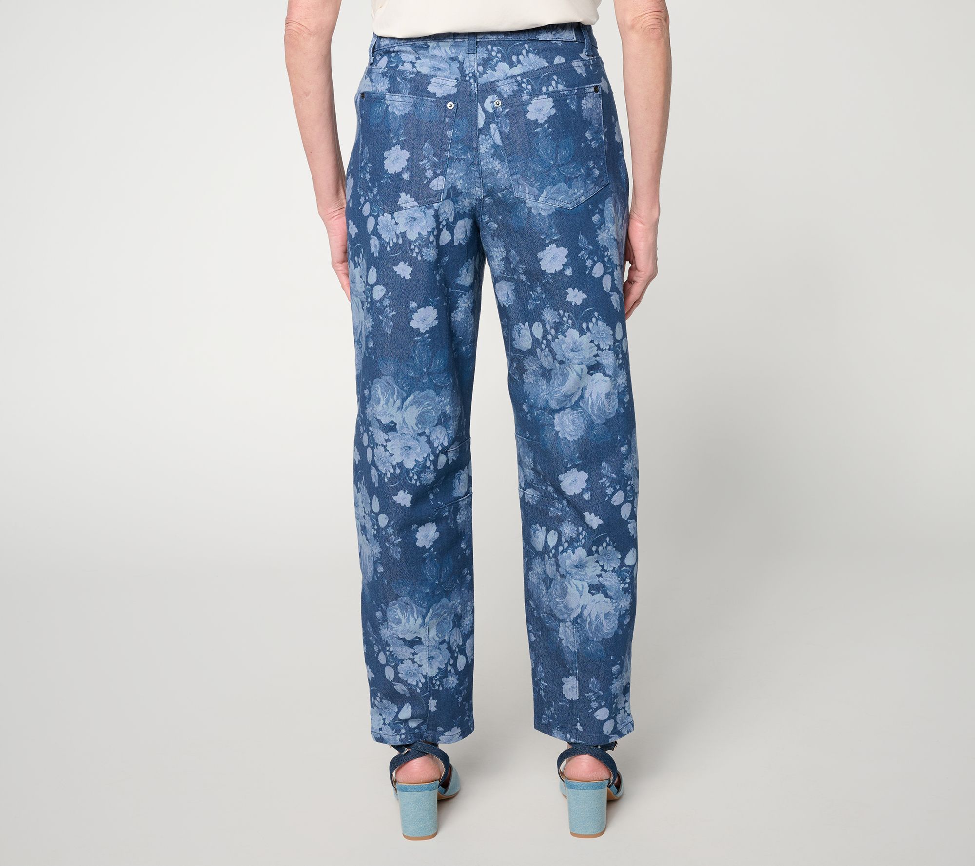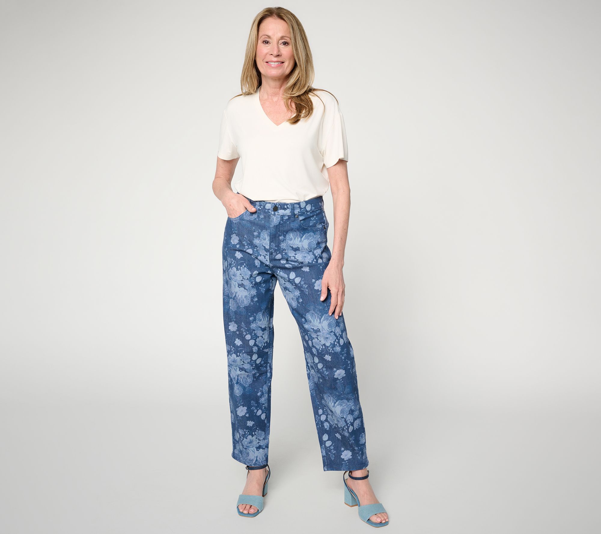 Could your closet use a fresh denim pick? These Me by Jennie Garth jeans give you the green light -- with a sweetly detailed floral print and a beautifully balanced barrel leg. (Jennie knows her stuff when it comes to a well-placed dart, and now you do, too, when it comes to making the trend work for you!) Style the feel-good design for sunny-day social plans, pics at the botanical gardens, and professional pursuits, with everything from kitten heels to retro sneaks. From Me by Jennie Garth.