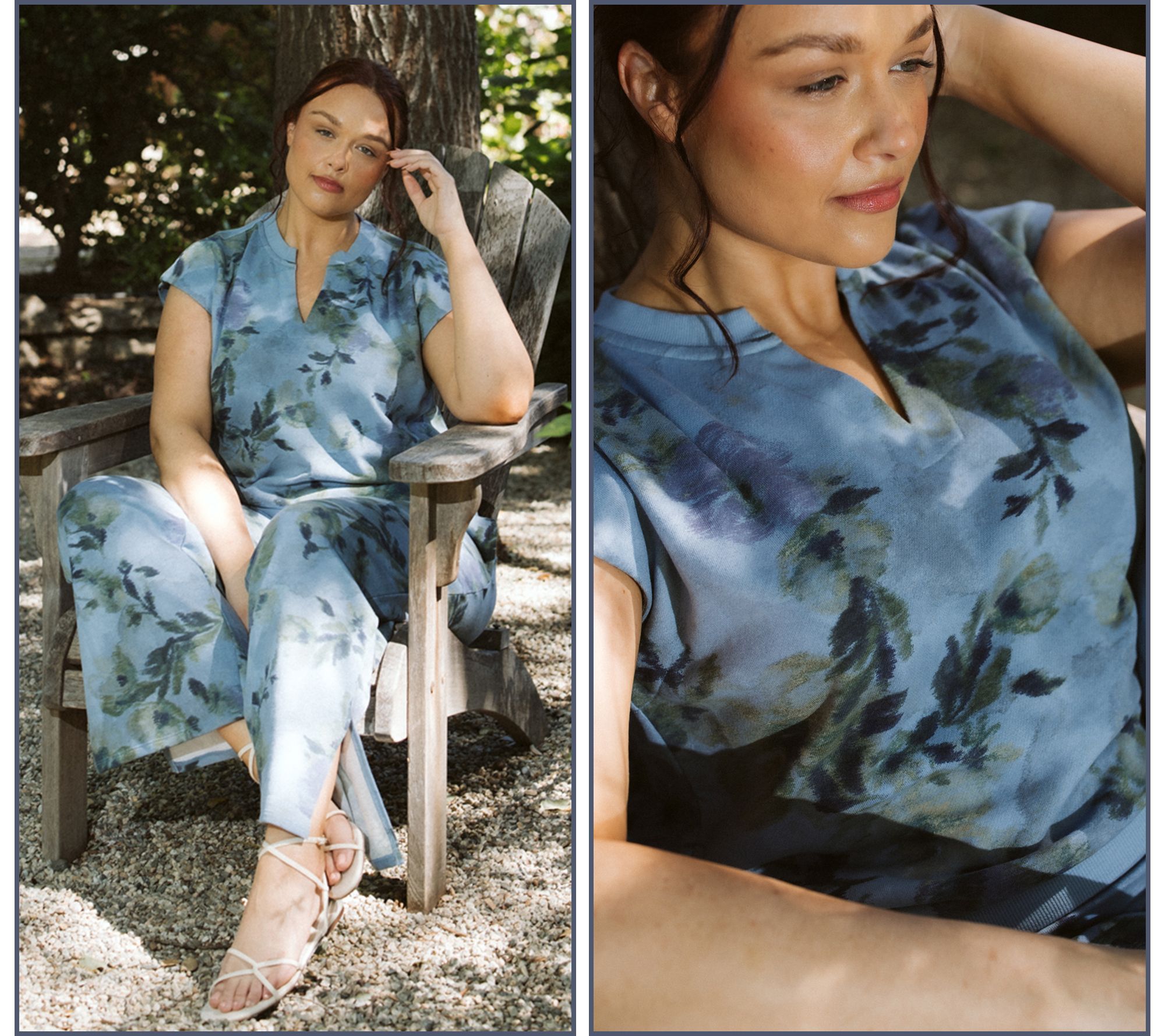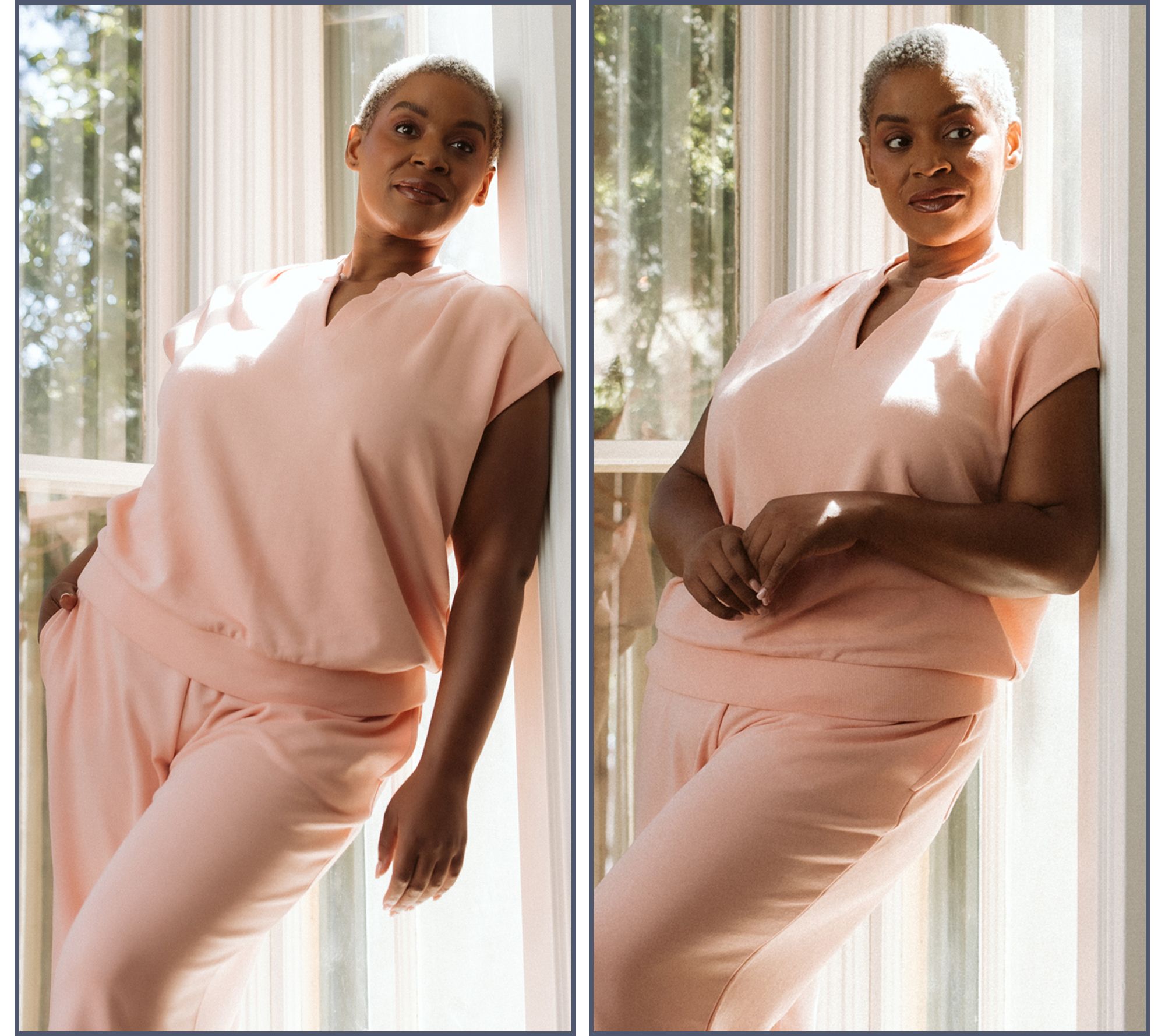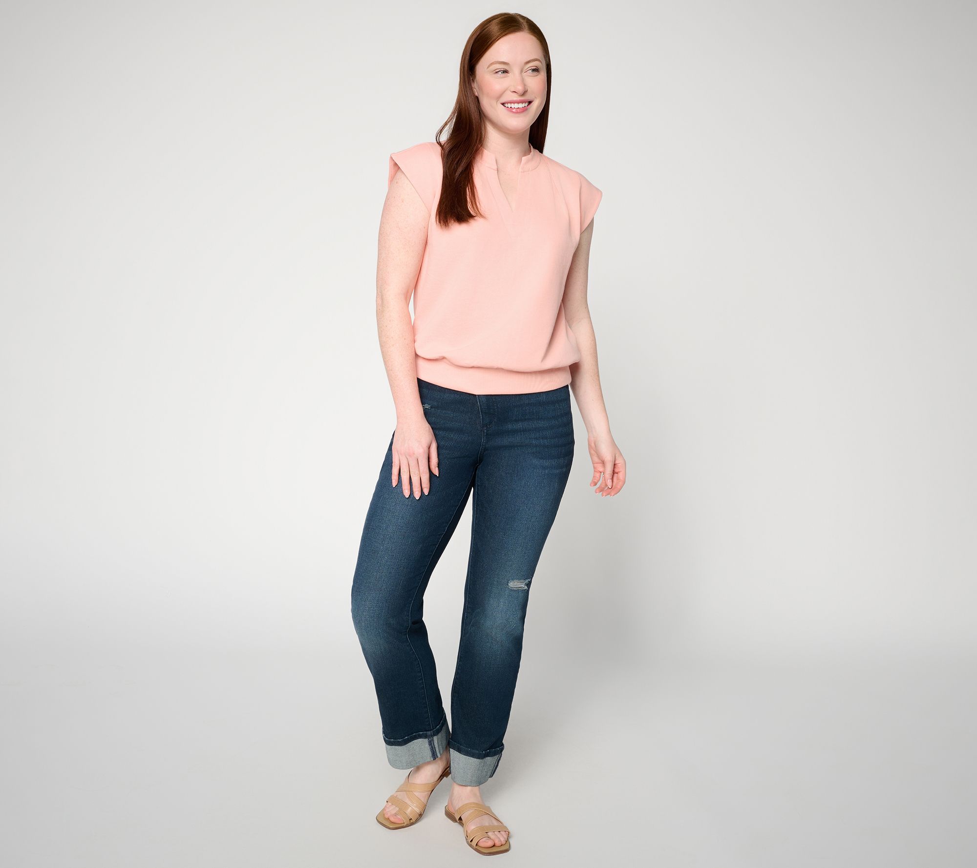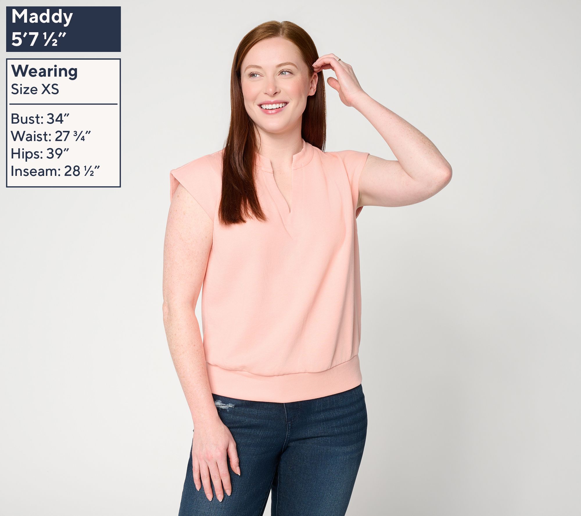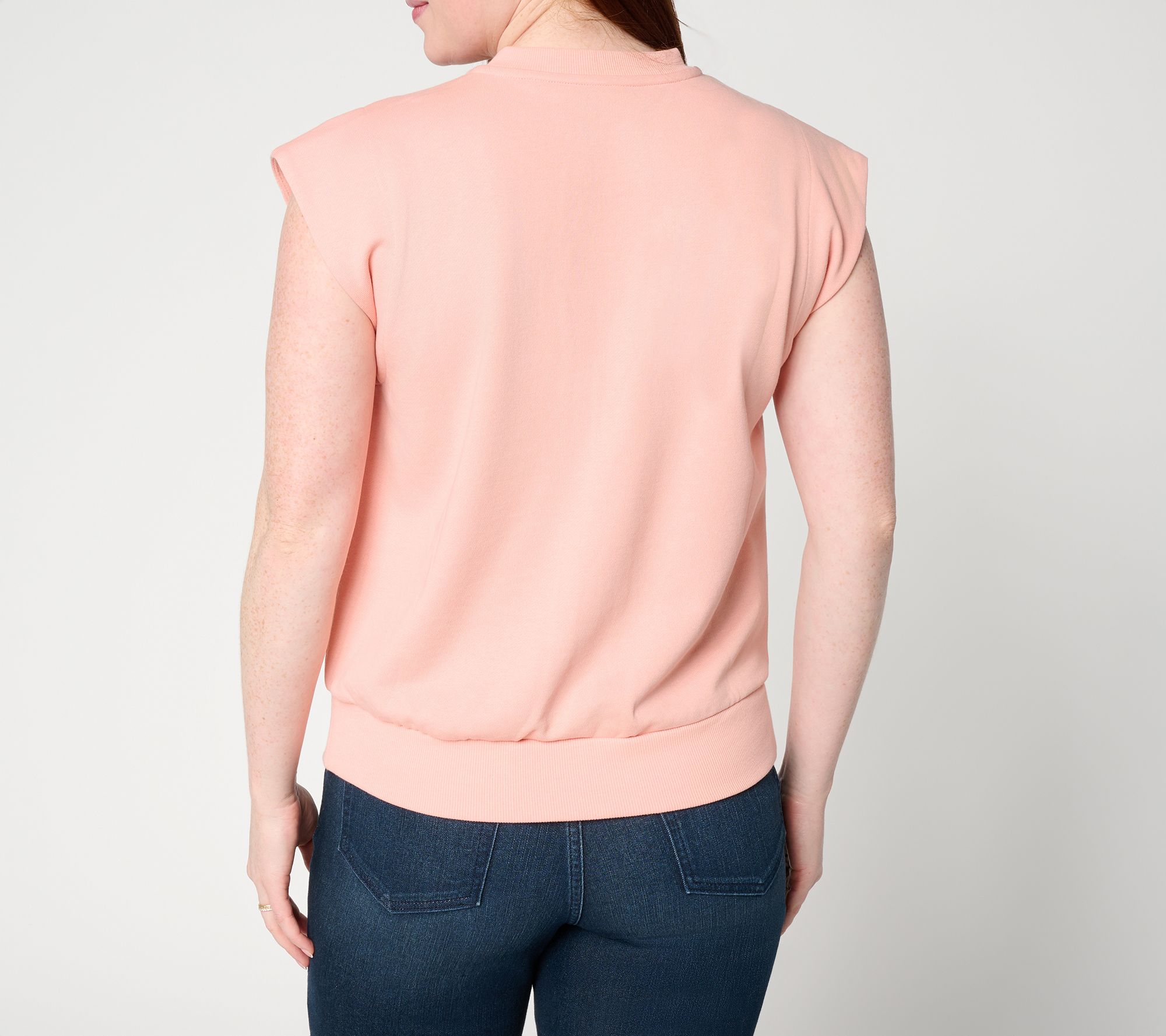 How do celebs do relaxed dressing? The same way we do -- by finding wardrobe pieces that blend comfort with chic style. Jennie Garth knows exactly how to do "me time" with this cotton-rich top, crafting it in French terry and adding thoughtful details like a split neckline and front pleating. Whether it's a busy weekday, a lazy weekend, or outrunning the paparrazi, you'll looked polished while feeling completely comfy. From Me Time by Jennie Garth.